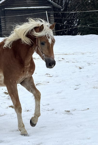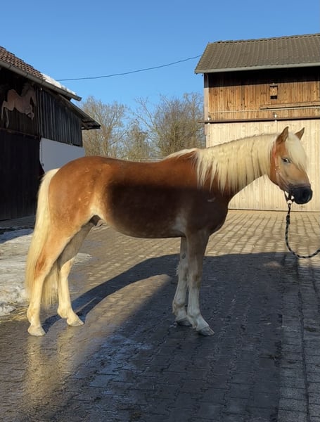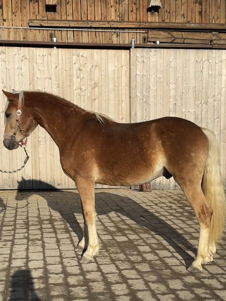 Zum Verkauf steht ein äußerst vielversprechender Haflingerhengst, geboren 2024, mit dem Namen Nando. Er ist ein Edelblut-Haflinger mit 2,735 % Blutanteil und überzeugt durch Sportlichkeit, Typ und eine hochinteressante Abstammung. Abstammung & Leistung: Vater: Nachtprinz (im Besitz von Bernhard Heisinger) – Sieger der Haflinger Körung 2022, Prämienhengst und Leistungshengst. Nachtprinz absolvierte seine Hengstleistungsprüfung 2024 mit einer Endnote von 7,71 und belegte damit den 2. Platz seiner Prüfungsgruppe – ein sehr solides Ergebnis mit Blick auf Rittigkeit, Grundgangarten und Leistungsbereitschaft. Großvater: Nachtstolz – mittlerweile Elitehengst aufgrund seiner überdurchschnittlich erfolgreichen Nachzucht und sportlichen Erfolge. Mutter: Abstammend von Aachen, einer bewährten Linie mit korrektem Fundament und gutem Wachstum. Erfolge: Siegerhengstfohlen bei der Fohlenschau – bereits früh durch Qualität, Ausdruck und Bewegung aufgefallen. Typ & Bewegung: Nando präsentiert sich als sehr sportlicher Haflinger mit überdurchschnittlichen Grundgangarten. Besonders hervorzuheben ist sein raumgreifender, taktsicherer Schritt, der deutlich über dem Durchschnitt liegt. Exterieur & Entwicklung: Aktuelles Stockmaß: ca. 1,43 m Erwartetes Endmaß ca. 1,50 m Sehr edler Kopf, ausdrucksstark, mit langer Mähne und harmonischem Gesamtbild Charakter & Umgang: Absolut brav im täglichen Umgang Regelmäßig beim Hufschmied Geimpft und entwurmt wird täglich zur Koppel geführt Geht problemlos auf den Hänger Perspektive: Aufgrund seiner Qualität, Bewegung und Abstammung bringt Nando alle Voraussetzungen für verschiedene Wege mit. Eine Vorstellung zur Körung im Herbst wäre denkbar, ist jedoch keine Voraussetzung für den Kauf. Ebenso ist eine Kastration problemlos möglich, sodass Nando sich auch hervorragend als sportlicher, verlässlicher Freizeitpartner entwickeln kann. Nando wurde von uns als zweites Absetzpferd gekauft. Da wir unseren Bestand verkleinern, suchen wir nun einen fördernden, neuen Platz, der sein Potenzial weiterentwickelt.