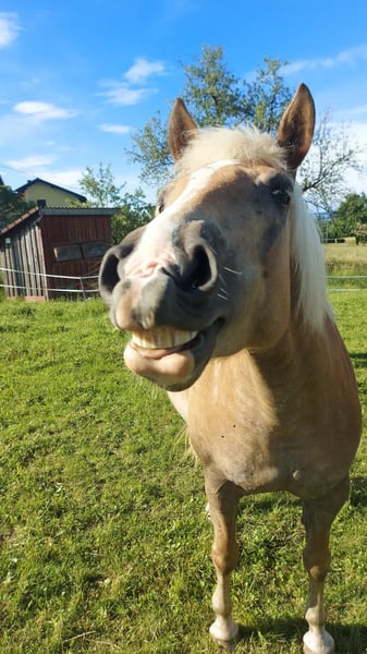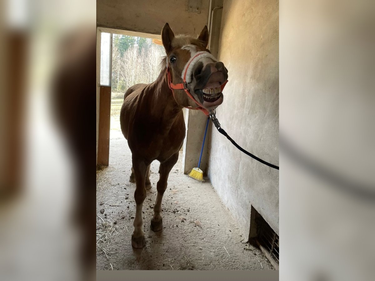Schweren Herzens gebe ich meine Hafi Stute Peppa ab , Pepps ist eine sehr Brave Stute mit Charakter. Sie ist freundlich und Kinder lieb ich würde sie aber nicht als schulpferd abgeben da sie mit wechselnden Reitern nicht gut klar kommt denn sie testet Anfangs Grenzen und man sollte konsequents und Durchsetzungsvermögen haben. Sie ist auch in der Dressur A ausgebildet und springt gern. Bodenarbeit und rückwärts einparken beherrscht sie auch, sie kann Auf Kommando Lachen sieht man auch auf den Fotos. Am liebsten geht sie Ausreiten auch allein ist ihr alles sehr egal. Am Reitplatz muss sie sich manchmal ärgern man kennt das indem sie unruhig mit dem Kopf wird jetzt nicht gefährlich aber auf Turniere wär sie wahrscheinlich nicht tauglich . Ansonsten war sie immer gesund geht barhuf und ist wirklich eine treue Seele mit ihr kann man echt alles machen . Sie kann auch bei mir Untergestellt bleiben .......