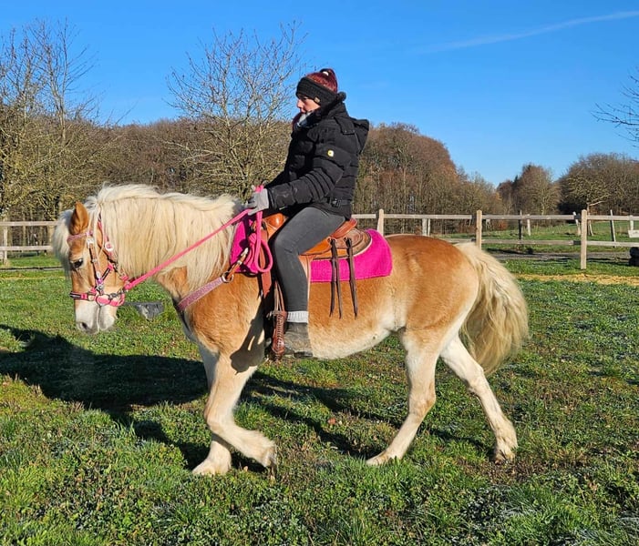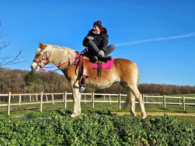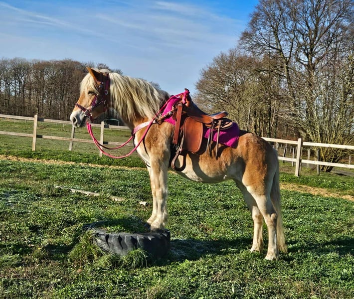 Haflinger-Stute brav, gelassen & ein echtes Freizeitpony Eckdaten: • Name: Diva • Rasse: Haflinger • Geschlecht: Stute • Alter: 12 Jahre • Stockmaß: ca. 1,50 • Ausbildungsstand: Freizeitpony, geritten im Gelände • Preis: 5900,- Zum Verkauf steht unser hübscher Haflinger-Stute DIVA “ ein ehrlicher, zuverlässiger und liebevoller Partner, der mit seinem charmanten Wesen und seiner coolen Art begeistert. DIVA ist: – absolut brav und unkompliziert im täglichen Umgang – ruhig, freundlich und immer gut gelaunt – geht sowohl alleine als auch in der Gruppe entspannt ins Gelände – kennt Kinder, Hunde und Landmaschinen – steht brav beim Putzen, Satteln und Schmied – ein echt tolles Pony, das Freude an der Arbeit und am Miteinander hat Mit seinem ausgeglichenen Charakter und seiner Gelassenheit ist Toni das perfekte Freizeitpony für Reiter, die ein zuverlässiges, nervenstarkes und unkompliziertes Pferd suchen – ideal für Ausritte, Freizeit oder Bodenarbeit. Perfekt für: Freizeitreiter, Familien oder Wiedereinsteiger, die ein sicheres, treues und freundliches Pony suchen, mit dem man einfach Spaß haben kann. Unsere Pferde: – regelmäßig entwurmt – vom Schmied & Osteopathen betreut - AKU-MICROCHIP -E-PAß ist immer dabei . Hofladen: Zubehör, Sättel & Trensen erhältlich Transport auf Wunsch günstig organisiert ✅ Unser Service: – 3 Monate Umtauschrecht – Proberitt: 35 €, jedes weitere Pferd 25 € (beim Kauf am selben Tag angerechnet) – 100 € Sofort-Rabatt bei Abholung/Transport am selben Tag – Persönliche & ehrliche Beratung Anfragen bitte nur telefonisch: 0171 – 4001968 Täglich erreichbar: 8–20 Uhr ⚠️ Keine E-Mail oder WhatsApp ⚠️ Alle Angaben ohne Gewähr