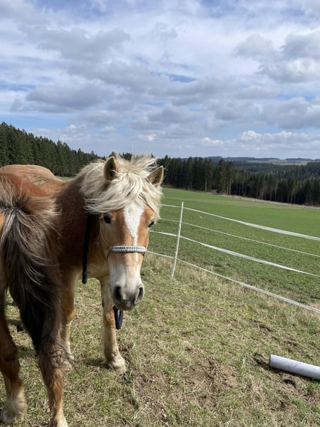 Stockmaß: 1,45 m Geburtsjahr: 2011 (15 Jahre) Mit ihrem freundlichen Wesen ist unsere Haflingerstute eine tolle Partnerin für Menschen, die Freude an einer feinfühligen, lernwilligen Stute haben. Besonders bei der Bodenarbeit zeigt sie sich aufmerksam und sehr motiviert. Beim Reiten wünscht sie sich einen Reiter mit Erfahrung, der ihr Sicherheit vermitteln kann. Sie ist schmiede- und verladefromm, wird aktuell barhuf gehalten und zeigt keine Probleme dabei. Sie wird regelmäßig entwurmt und ist grundimmunisiert. Besichtigung nach Absprache möglich, bei Interesse einfach melden.