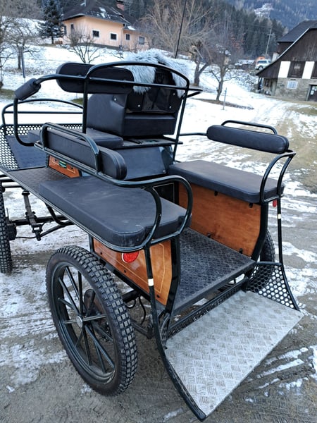 Absolutely lovely mare, has already accompanied several beginners up to riding license, and has been driven single- and pair-horse for weddings. Additionally: Wagonette with single- and pair-horse harness (€3,500) Luxury harness for pair-horses (€2,500) New horse-drawn sleigh (€1,500)