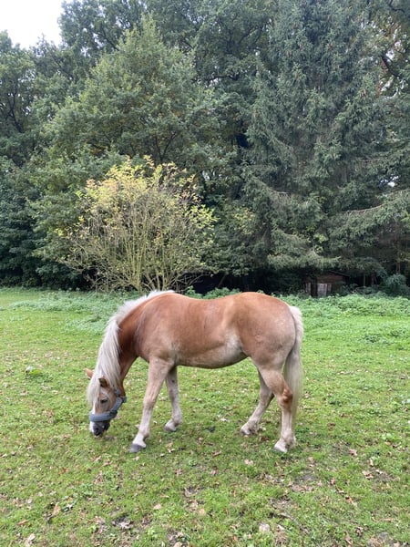 Helaas is onze 15-jarige merrie nu alleen in onze stal. Vanwege haar leeftijd willen wij geen ander paard meer houden. Ze heeft in het verleden een veulen gehad dat goud bekroond was en als hengst gekeurd werd. In het voorjaar heeft ze soms last van hoesten, en in de zomer kan ze last krijgen van zomereczeem, waardoor ze niet altijd geschikt is om gereden te worden. Verder is het een stevige merrie met goede bewegingen. Tot vijf jaar geleden is ze regelmatig gereden en aangespannen. Op concoursen is ze tot en met klasse A dressuur uitgebracht.