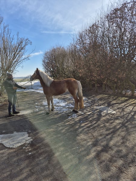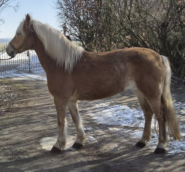 Arlette eine bildschöne reinrassige Haflingerstute mit voller Abstammung. Sie ist brav geritten und sehr umgänglich.