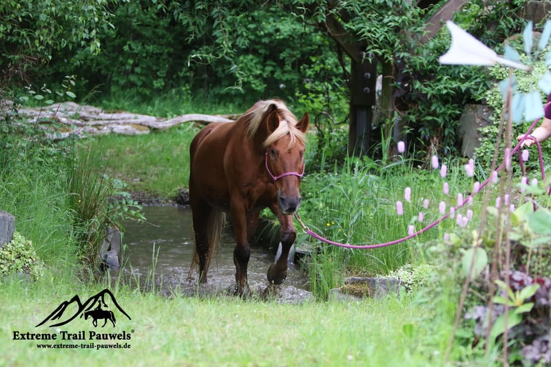 Leider muss ich mich aus persönlichen Gründen von meiner Stute Nele trennen. Die schwerste Entscheidung die ich je treffen musste. Nele ist eine 2007 geborene Haflinger x Knabstrupper Stute und 143 cm groß. Ihr wurden Aufgrund von periodischer Augenentzündung in 10/2016 beide Augen entfernt. Ihre Blindheit schränkt sie überhaupt nicht ein! Ich suche für Nele ein Zuhause bei dem sie wieder die Nummer 1 ist. Sie möchte was tun und ist bei vorhandenem Vertrauen für jeden Spaß zu haben. Halle, Platz, Gelände, Kurse, Turniere, Extreme Trail, Kutsche, bekannte und unbekannte Anlagen. Alles kein Problem für sie. Sie wurde von mir im Prinzip Freizeitmäßig Richtung Western und Dressur geritten. Sie kennt Doppellonge, Longe, Handarbeit, Ansätze von Zirzensik, Rinderarbeit, Working Equitation und man kann sie auch Frei Laufenlassen. Es klingt unvorstellbar aber sie hat wirklich kein Handicap durch die Blindheit! Von der Haltung her ist ihr auch vieles bekannt. Grundsätzlich würde ich mir hier tagsüber eine kleine Gruppe von max 6 Pferden und nachts Box wünschen. Perfekt wäre zeitgesteuerte Heufütterung da Nele zu Übergewicht neigt. Aktuell hat sie 24/7 Heu mit engmaschigem Netz und trägt dabei eine Fressbremse um das auszugleichen. Traumhaft wäre natürlich wenn sie mit entsprechend angepasster Fütterung von der Fressbremse weg käme. Wichtig: Koppel im Sommer, wenn nur stundenweise ggfs ist es auch gar nicht möglich. Selbstverständlich ist Nele schmiedefrom und Barhuf (6 Wochen Rhytmus) Sie lässt sich super alleine oder auch mit einem Pferd verladen. Mann kann sie mit der richtigen Technick auch ohne Hilfe komplett alleine verladen. Ihr Zähne sind jährlich im August bearbeitet. Sie ist auch vollständig Turnierkonform geimpft inklusive Herpes. Ich gebe sie nur mit Schutzvertrag (1€) ab und nur wenn alles passt! Zubehör (Vollausstattung vorhanden) kann käuflich erworben werden: KEIN Händler, Schulbetrieb oder als reiner Beisteller! Wenn du mit dem Herzen siehst und du dir vorstellen könntest ein neuer Partner von Nele zu werden, dann melde dich bitte!