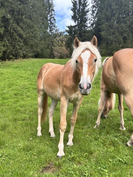 Vendo, per riduzione del numero di cavalli, una giovenca Haflinger di 1,5 anni molto brava con una genealogia eccellente. È possibile vederla in qualsiasi momento.