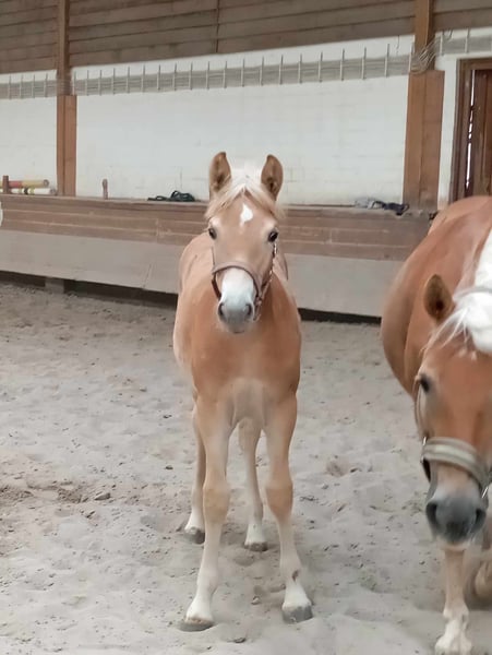Very beautiful Haflinger mare out of the state premium mare Pappsi and the licensed stallion Neustart is a purebred Haflinger mare with a very good gait and good jumping results. Papsica, born on 12.05.2024, knows the foal ABC, is halter-manageable, forge-friendly and learns new things very quickly. Pretty, sporty with a beautiful neck, great pedigree and super friendly. She will certainly make her future owner very happy. Her excellent pedigree and balanced temperament make her a valuable addition to any breeding program A nice place with lots of exercise in a herd for the next 2 years of her growing years would be a perfect place as a foal. This young mare impresses with her elegant appearance and friendly nature. She shows great potential in dressage and is ready to continue growing and learning with her new owner. If you are interested or would like more information, we look forward to hearing from you!