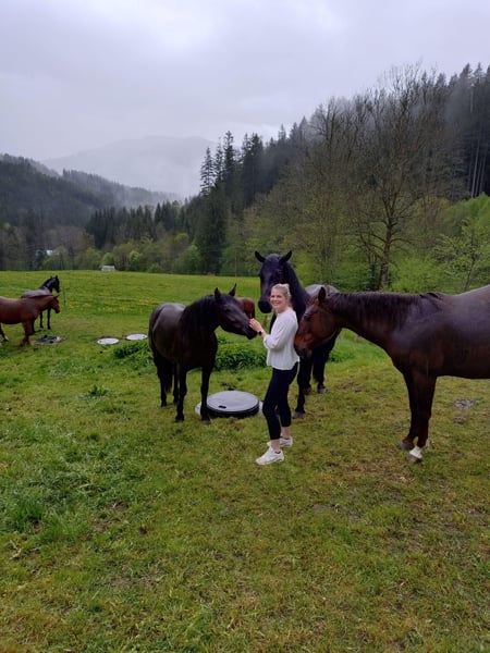 🐎 Hartendier uit liefdevolle zelfopfok zoekt een nieuw thuis 🐎 Na lang nadenken hebben wij besloten om onze zelfgefokte merrie Amy in goede, stimulerende handen te geven. Ze is met veel liefde, geduld en zorg grootgebracht – sterk gebouwd en uitstekend gesocialiseerd door haar zomers op de bergweide in een gemengde kudde. 🐴 Amy – geboren mei 2023, momenteel ca. 150 cm, merrie Amy is een levenslustige, levendige jonge dame met een heel bijzonder charme. Ze is speels, nieuwsgierig en staat graag in de belangstelling – in de dagelijkse omgang toont ze zich attent, leergierig en zeer gemotiveerd om haar mens te behagen. Amy heeft haar eerste ervaring in het tweespannen rijden opgedaan en is klaar voor verdere opleiding. Ze beschikt over goede basisvaardigheden, beweeglijkheid en een heldere geest – een jonge merrie die plezier heeft in haar werk en met de juiste begeleiding kan uitgroeien tot een echte allrounder. Amy is gezond, regelmatig ontwormd, hoefbevrij en kent het leven in de kudde. Ze is niet “snel klaar gemaakt”, maar mocht in haar eigen tempo groeien en leren. Amy kent het reizen met de trailer en is laadsicher. Ik hoop dat Amy een thuis vindt waar ze verder met hart, verstand en geduld gestimuleerd wordt – mensen die plezier hebben in de ontwikkeling van jonge paarden en haar karakter weten te waarderen. We kijken uit naar een bericht of telefoontje! Familie Schmied