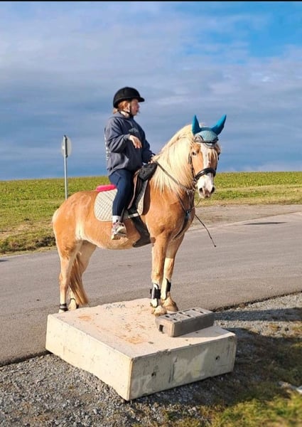 Hallo, ich möchte meine tolle 4 jährige Stute abgeben, da ich leider absolut keine Zeit mehr für sie finde... Geboren ist sie am Glückstag dem 7.7.21 Ein absoluter Allrounder, egal ob Wald, Fluss, Wiese, Feld, Reitplatz - gemeinsam oder allein, ganz egal. Nicht an Anfänger abzugeben da sie eben doch noch ein Jungpferd ist und klare Richtlinien braucht. Es würde mich freuen wenn man sie zur Stutenleistungsprüfung zulässt, dass habe ich dieses Jahr leider einfach nicht geschafft. Bei der Stutbucheintragung bekam sie eine 8,0 im Körperbau aber leider nur eine 7,2 Endnote, wo ich sie aber absolut nicht sehe. Natasha ist ein super Freizeitpferd und wurde auch nur freizeitmäßig geritten, seid 2 Monaten wurde gar nichts mehr mit ihr gemacht, wenn man sie allerdings regelmäßig reitet kann man super schnell Fortschritte bei ihr erkennen, also ein Top Pferd zum selbst ausbilden. Zur Zucht ist sie auch Top geeignet ihr Fohlen bekam den Prämientitel mit einer 7,4 und hat den selben tollen Körperbau. In der Herde ist sie Rangniedrig, aktuell steht sie mit ihrer Halbschwester + Fohlen auf Koppel. Sie ist 24/7 auf Koppel ausser im Winter, da ist Sie nachts drinnen. Mit ihr wurde schon so gut wie alles gemacht, egal ob Voltigieren, mit Plastebechern und Fahnen reiten, zu zweit auf ihr für kurze Zeit reiten, sie wurde mit und ohne Sattel, western und englisch geritten, sie kennt Freiarbeit, Kutsche, im Winter ist einer Geritten und einer hat sich mit den Skiern drann gehängt .... - sie ist bei sowas total entspannt. Wurmkur bekam sie, ca 1,45m ist sie groß. Fohlen ist ebenfalls zu verkaufen