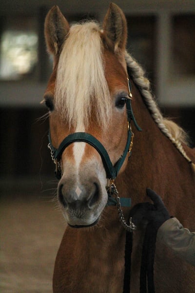 Feder is an exceptionally typy young Haflinger mare with excellent riding qualities. She comes from a small breeding farm in South Tyrol, where a very successful breeding program has been maintained for decades with only two broodmares. The mare lines cultivated there have produced numerous highly decorated mares, and Feder was qualified for the foal championship and awarded high premiums there. In Germany, she has not yet been presented or registered as a broodmare, but she is a premium candidate and therefore quite interesting for breeding purposes. In South Tyrol (region of Bolzano), she was able to spend the summer freely grazing in the herd on the alpine meadows before we brought her to Germany. She is now backed and shows great eagerness and willingness to learn. She is well-behaved and resilient, yet has enough forward movement to be worked on a sport level. In addition to her beautiful exterior, she has three good basic gaits, making further dressage training a promising prospect. Currently, she is ridden in all three basic gaits, so further training in all areas is needed. Nevertheless, we enjoy working with her every day, and she is always motivated to solve tasks well and participates willingly. Due to her current training level, she is not suitable for children or beginners at this time and requires further professional development. Beyond dressage work in the arena and on the round pen, she has gained a solid general education. She loads very well, stands quietly at the blacksmith, and is familiar with dogs, tractors, rinsing, pole work, cavaletti, and has participated in a Horseagility course, where she handled all tasks flawlessly and with confidence. She has already been radiographed with excellent results (05/24) and shows the same robustness as in her previous upbringing. She has never been ill and we have found no abnormalities. Currently, she is officially measured at 148 cm with shoes, but her solid build allows her to comfortably carry larger riders.