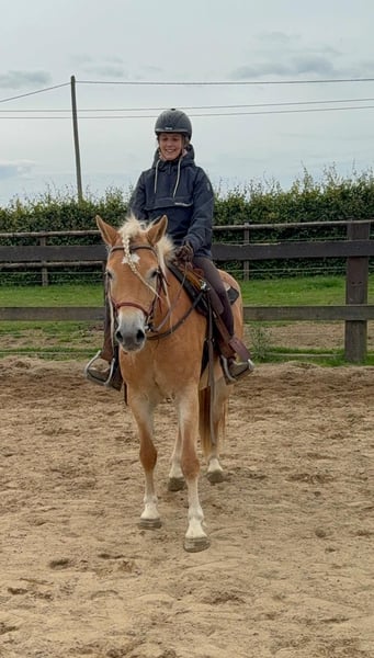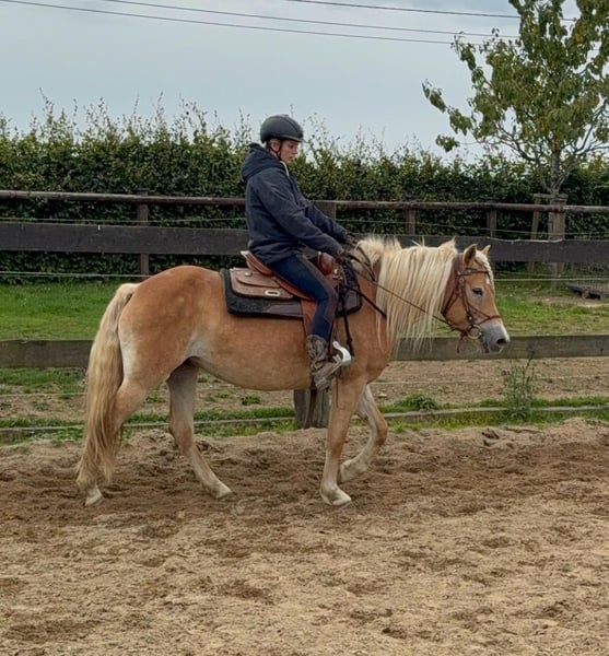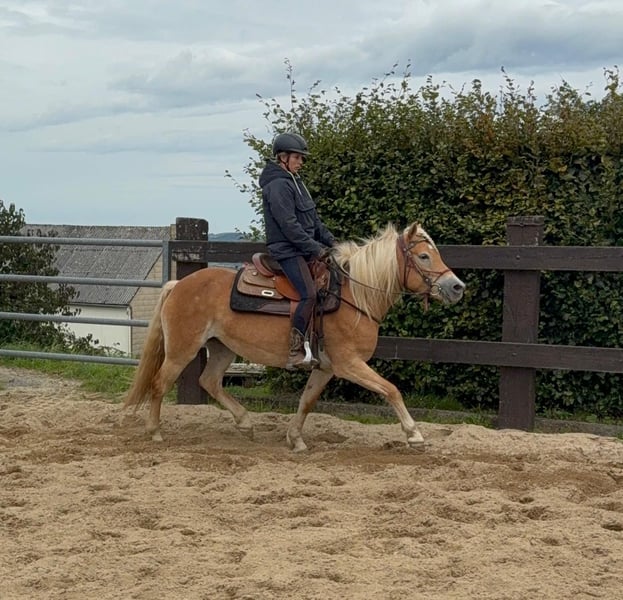 Zum Verkauf steht eine 4 Jahre alte Haflinger Stute, etwa 152cm groß. Sie ist brav im Umgang, hat ein tolles Wesen und ist angeritten. Sie läuft sehr brav mit Reiter in allen Gangarten und wird bei uns regelmäßig weiter gearbeitet. Sie zeigt keine Unarten, ist nicht schreckhaft und arbeitet gerne mit. Sie hat sehr gute Abstammung und wäre bestimmt auch interessant für die Zucht. Sie wird bei weiterer Ausbildung bestimmt ein tolles Pferd für die ganze Familie. Preis steigt bei weiterem Training. Krankheiten oder Allergien sind nicht bekannt. Eine AKU darf gerne gemacht werden. Gerne anrufen oder eine Nachricht senden 0157 36803742 Alle Angaben ohne Gewähr, Preisänderungen vorbehalten, Transport möglich, Onlinekauf möglich