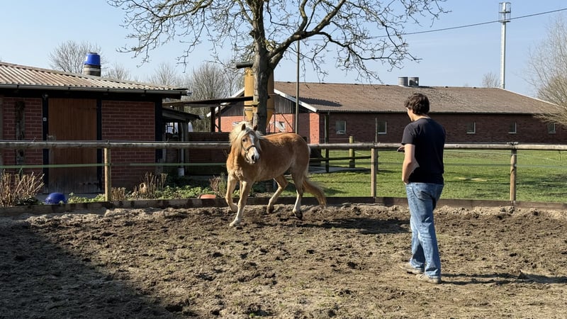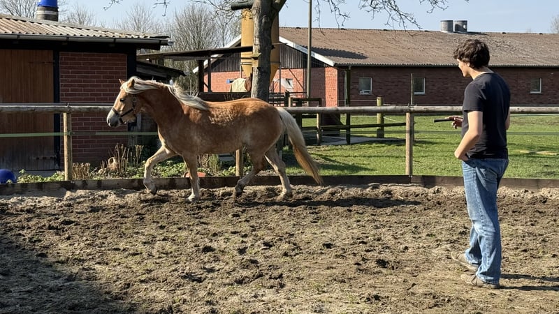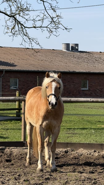 Du suchst eine verlässliche Partnerin für Freizeit, Sport oder Kutschefahren? Unsere 4-jährige Haflinger-Stute Alexa bringt das ideale Talent für Sport und Freizeit mit. Sie ist eingeritten und zeigt sich unter dem Sattel stets konzentriert und brav, auch im Gelände. Sie ist bereits jetzt sehr nervenstark im Gelände, unteranderem das sie das nebenherlaufen an der Kutsche unmittelbar als Fohlen gelernt hat. Alexa geht auf neuen Aufgaben neugierig zu. Aktuell führen wir sie behutsam an das Kutschefahren heran. Einen Baumstamm zieht sie sehr arbeitswillig und gelassen. Auch die Bodenarbeit mit Alexa macht große Freude, sie reagiert auf feine Kommunikation und lässt sich frei (ohne Longe) longieren und reagiert fein auf Körpersprache und Stimme. Sie ist dem Menschen sehr zugewandt, unerschrocken und genießt Putzeinheiten. Sie hat einen klaren Kopf und ist im täglichen Umgang unkompliziert. Alexa kennt landwirtschaftliche Maschinen, Hunde, Kinderlärm und ist schmiede- und verladefromm. Haflinger-Stute Alexa ist artgerecht in einer Herde im wunderschönen Münsterland aufgewachsen. Die weitläufigen Wiesen und Weiden haben ihr Trittsicherheit und Gelassenheit mitgegeben, die man sich von einem Haflinger wünscht. Sie ist robust in einem Offenstall aufgewachsen, wird regelmäßig entwurmt und hat einen Equidenpass. Beschreibung: Name: Alexa Rasse: Haflinger (mit Edelblutanteil) Geschlecht: Stute Geburtsdatum: 09.04.2022 Farbe: Fuchs mit hellem Langhaar Stockmaß: 156 cm geschätzt Zucht & Qualität: Alexa stammt aus einer offiziell eingetragenen Zucht im Münsterland. Sie besitzt volle Papiere (Abstammungstafeln) vom Westfälischen Pferdestammbuch. Bei der Anpaarung wurde besonders auf Charakterfestigkeit und korrektes Fundament geachtet. Die Mutter und Oma können vor Ort besichtigt werden. Alexa ist gegen Tetanus, Influenza und Herpes geimpft, gechippt, besitzt einen Equidenpass und wurde dem Zuchtverband vorgestellt. Eignung: Durch ihr korrektes Gebäude und schwungvollen Grundgangarten stehen Alexa alle Wege offen. Ob als Freizeit-Pferd, im Fahrsport oder für den ambitionierten Breitensport ist sie eine nervenstarker Partnerin. Melden Sie sich gerne telefonisch unter: Kontakt: +49 152 05977730 Hinweis: Ein Kennenlernen ist jederzeit nach Absprache möglich!