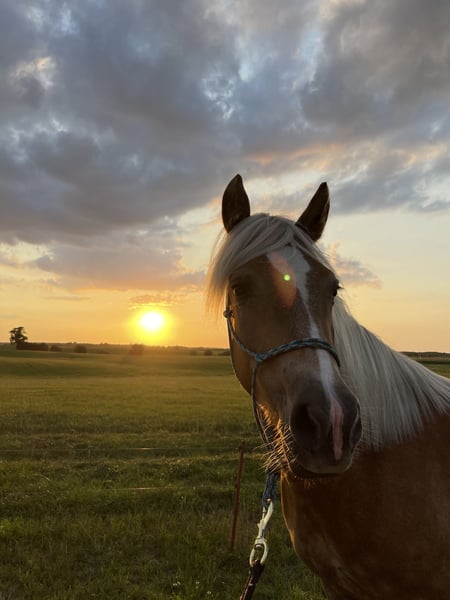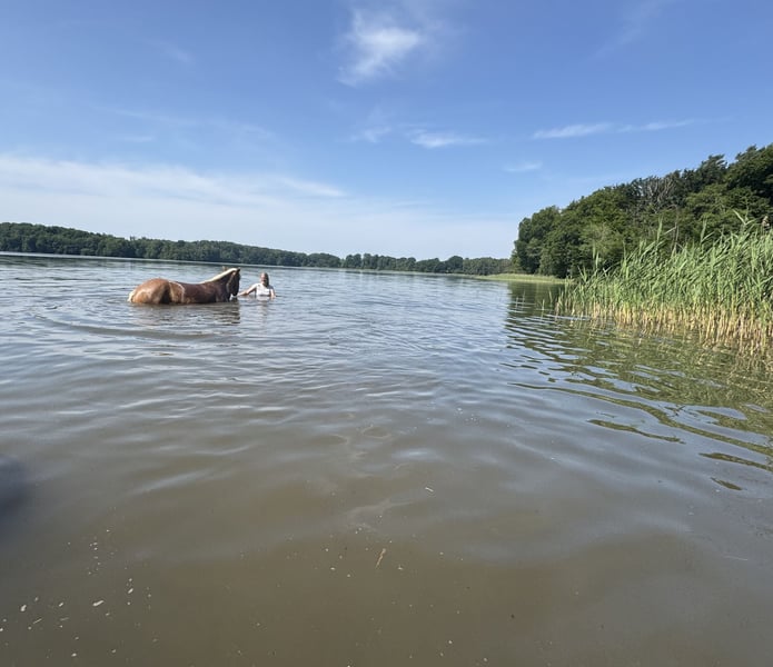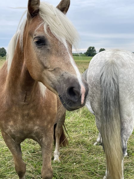 Haflingerstute, 5 Jahre- sucht liebevolles Zuhause mit Zeit und Herz Geboren Mai 2020 Vater Wapensiero Mutter Gioja Leider muss ich meine 5-jährige Haflingerstute aus Zeitgründen abgeben. Sie wird hauptsächlich im Gelände geritten. Gwendolin kennt die Basis unterm Reiter und wurde viel vom Boden aus gearbeitet. Sie zeigt sich dabei sehr lernwillig und aufmerksam. Momentan benötigt sie noch einen erfahrenen Reiter, da sie in der Ausbildung steht und einen klaren, konsequenten Umgang braucht. Mit regelmäßiger Bewegung und Förderung bin ich jedoch überzeugt, dass sie sich zu einem absoluten Verlasspferd bzw. tollen Kinderpferd entwickeln wird- sie lernt schnell und möchte immer gefallen. Sie hat einen starken, aber ehrlichen Charakter und braucht einen Menschen, der sie fordert, fördert und liebevoll, aber konsequent führt. Gwen ist schmiede- und verladefromm. Sie kennt nur Offenstallhaltung, daher wünsche ich mir, dass sie weiterhin in einem Offenstall gehalten wird. Ich wünsche mir für sie einen Platz, an dem sie beschäftigt wird und man ihr die Zeit und Aufmerksamkeit schenkt, die sie verdient. Eine Abgabe erfolgt nur, wenn alles passt. Alles weitere gern persönlich.