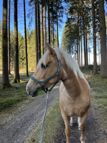 **Sales Advertisement: Beautiful Haflinger Mare for Sale** For sale is our lovely Haflinger mare Paula, born in 2018, with a height of 15.3 hands (156 cm). Paula captivates with her friendly nature and uncomplicated demeanor. She is excellent for leisurely walks and relaxed hours in the countryside. Her somewhat skittish personality makes her unsuitable for beginners, as she requires a lot of trust from her owner. She is well-trained, easy to handle, and has already gained some experience under saddle, lunging, and carrying weight on her back. Paula is healthy, vaccinated, and regularly dewormed. Additionally, she is barefoot. If you are genuinely interested or have any further questions, we look forward to hearing from you!