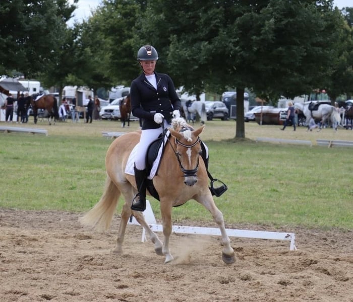 Haflinger Stute, geb. 2019 – Vielseitige Dressurpartnerin Diese charmante Haflinger-Stute wurde im Jahr 2019 geboren und überzeugt durch ihre freundliche Art sowie ihre vielseitigen Fähigkeiten im Dressursport. Mit ihrem ausgeglichenen Charakter ist sie sowohl für ambitionierte Freizeitreiter als auch für fortgeschrittene Dressurreiter eine ideale Wahl. Im Umgang ist sie ein wahrer Schatz, die Ruhe selbst. Beim Reiten (Platzarbeit) braucht sie einen Reiter, der kein Anfänger ist. Sie ist lieb, hat aber viel GO. Im Gelände ist sie sehr ausgeglichen. Auch das Springen liegt ihr und sie hat viel Freude daran, das wurde bei uns aber nicht weiter gefördert. Sie verfügt über eine solide Grundausbildung im Dressurbereich und zeigt bereits viel Talent für die klassischen Dressurlektionen. Durch ihre robuste Konstitution und ihren angenehmen Bewegungsablauf ist sie bestens geeignet, um sich in der Dressur weiterzuentwickeln und an Turnieren teilzunehmen. Sie ist mehrfach A platziert und gewonnen. Die Haflinger-Stute ist gut erzogen, schmust gern mit ihrem Menschen und ist im Umgang stets freundlich und zuverlässig. Sie ist regelmäßig entwurmt, geimpft und gesund. Aufgrund ihrer angenehmen Art eignet sie sich auch gut für Reiter, die Wert auf eine harmonische Partnerschaft legen.