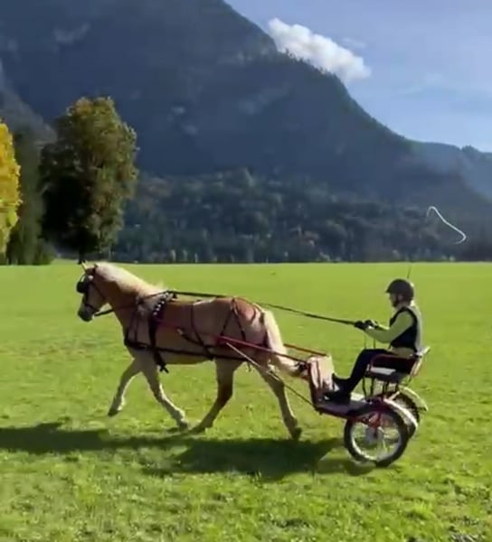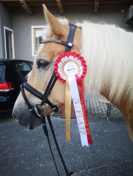 Due to personal circumstances, I unfortunately need to reduce my herd and am therefore offering my 8-year-old Haflinger mare, "Luechhof's Champagne," affectionately known as "Hafi." She competes confidently in dressage at solid A level and has been presented in show jumping competitions up to 95 cm. In both disciplines, she clearly still has significant potential for further development. Currently, she secured 3rd place at the Tyrolean Haflinger Championships in jumping. She is very well-behaved and patient with children and has already participated in lead-rein classes. A 6-year-old girl has also ridden her in walk and trot free, demonstrating her calm demeanor. Hafi has experience in single harness driving as well. She is truly an exceptionally well-behaved, motivated, and sensitive horse. With an experienced rider, she has enough go to enjoy riding and have fun, while with a less experienced or more nervous rider, she remains calm and cautious. She is, of course, shoe- and loading-safe. If you are genuinely interested, I would be happy to discuss further details over the phone. Test rides can be arranged by appointment. A fee of €50 is charged for this, which will be refunded upon purchase.