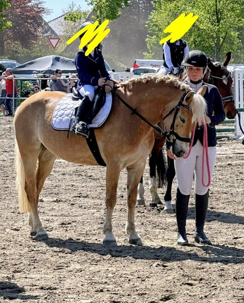 Hier kommt Lara! Lara besitzen wir seit 4 Jahren. Sie ist eine treue Seele, hat meiner Tochter das Reiten beigebracht. Nun hat meine Tochter andere Interessen und Lara darf ein andere Familie glücklich machen mit ihrem Goldcharakter. Lara macht jeden Spaß mit: Ringreiten, Turniere, Ausritte mit anderen Pferden, alleine oder mit Fahrrad. Man kann auf ihr Voltigieren (hier ist sie allerdings nicht die Fleißigste). Sie ist in jeder Situation händelbar von Groß und Klein. Ein Parcours absolviert sie brav. Wir haben auch eine Kutsche gekauft im Herbst. Nur zum Einfahren kam ich leider nicht mehr, da ich schwanger geworden bin und vorraussichtlich im Frühjahr dafür keine Zeit haben werde. Die Kutsche darf aber gegen Aufpreis mitgenommen werden. Lara ist ein "Koppelunfall" (aber reinrassig) und besitzt einen Pass ohne Abstammung. Sie steht in einer gemischten Herde und macht für Futter alles. Sie wurde uns als Ekzemer verkauft. In den letzten zwei Jahren benötigte sie aber nur eine Fliegenhaube. Decken, Fliegenhaube, Sattel und Trense nimmt sie mit in das neue Zuhause. Sie kennt Offenstall und im Winter Boxenhaltung mit täglichen Weidegang. Sie kennt es auch alleine zu sein und klebt nicht am Zuhause, wenn sie mal alleine ausreiten muss. Wir haben ganz viele verschiedene Videos, die wir gern auf Anfrage versenden. Aufgrund der bevorstehenden Geburt meines zweiten Kindes, ist es Probereiten bis Mitte/Ende Februar von Vorteil ;)