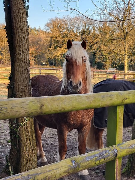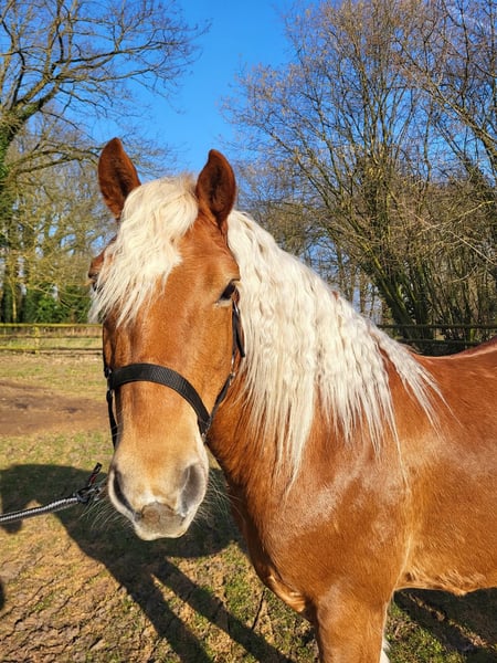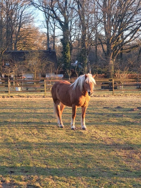 Met pijn in mijn hart bied ik mijn Haflinger ruin Jores te koop aan, omdat wij helaas geen match meer zijn. Jores is een 10-jarige ruin van ongeveer 1.45 m hoog. Hij is een ouderwets type Haflinger, mogelijk met een vleugje trekpaard in zijn bloed (ingeschreven bij het ICS). Hij heeft een mooie donkere vacht en een krachtige, compacte bouw. Jores is een gevoelig en onzeker paard dat veel kan opkroppen en in spannende situaties snel in de “freeze-stand” kan gaan. Ik heb hem ruim een jaar geleden als groen, maar beleerd paard gekocht. In die periode is hij onder andere mee geweest naar het bos en dressuurmatig gereden. In het verleden heeft hij naar zeggen ook voor de koets gelopen. In april heb ik helaas een harde val van hem gemaakt (met blijvende schade aan mijn schouder), wat ons beiden mentaal een tik heeft gegeven. Ondanks dat is hij daarna nog onder het zadel geweest, maar hij bouwde daarbij veel spanning op. Daarom is hij vervolgens eerst volledig vanaf de grond opgepakt. Hij heeft als projectpaard gewerkt bij een student van de opleiding Natural Horsemanship. Hierbij is er gewerkt aan grondwerk, loswerken en lange lijnen. Het plan was om hem daarna weer rustig op te pakken onder het zadel, maar door mijn blessure en de onzekerheid die daarbij komt kijken, voel ik dat ik hem hierin niet meer kan geven wat hij nodig heeft (een zelfverzekerd persoon waar hij op kan bouwen). Hij voelt mijn spanning feilloos aan. Jores heeft daarnaast ook ervaring met het werken als handpaard; zowel als meelopend handpaard naast een rijdend paard als zelf onder het zadel met een handpaard erbij. Daarnaast heeft Jores meegedraaid in verschillende coachsessies. Opvallend is dat hij extraverte, dominante persoonlijkheden liever uit de weg gaat, maar juist toenadering zoekt tot de introverte en rustige mensen. Hij is eerlijk, zacht in contact en werkt graag als er iets te doen is, staat hij vooraan. Jores voelt zich op zijn best wanneer hij lekker in zijn vel zit (een paar kilootjes lichter) en zowel fysiek als mentaal wordt uitgedaagd. Hij heeft behoefte aan afwisseling en duidelijke begeleiding. De afgelopen tijd hebben we lichte vrijheidsdressuur opgepakt, wat hij zichtbaar leuk vindt om te doen. Hij denkt graag mee, pakt nieuwe oefeningen snel op en is erg leergierig. In de kudde gaat hij makkelijk samen met andere paarden. Hij loopt rustig de trailer op en gaat hier wekelijks mee het bos in aan de hand met een groep. Alleen op pad gaan gaat ook goed, mits de begeleider zelfverzekerd is. Ik zoek voor hem een zekere, rustige eigenaar. Rijden mag geen eerste doel zijn; vertrouwen, verbinding en duidelijkheid staan voorop. Vanuit daar kan uiteraard gekeken worden of het rijden in de toekomst weer passend is. Wat ik belangrijk vind: * 24/7 buitenhuisvesting * Een stabiele, zelfverzekerde begeleider Ik gun hem een plek waar hij mag landen, verder mag groeien in vertrouwen en gewaardeerd wordt om wie hij is. Voor meer foto's en video's neem een kijkje op www.instagram.com/dark_timber_ranch
