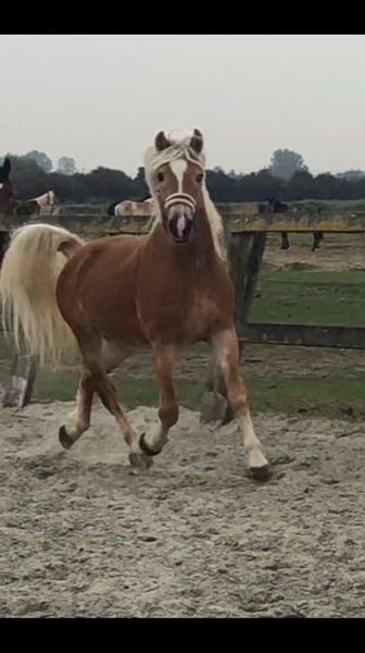 Bink ist ein 4-jähriger Haflinger-Rüde mit der schönen Rotvos-Farbe, die er von seinem Vater Liz Bergdorf geerbt hat. Er verfügt über fantastische Bewegungen, die sowohl für die Dressur als auch für die Kutsche geeignet sind; somit ist er das ideale Gebrauchspferd. Seine Mutter hat als Vater den bekannten Nachtregent. Sowohl Bergdorf als auch Nachtregent sind bekannt für ihre Gebrauchstüchtigkeit und haben dafür bereits mehrere Auszeichnungen erhalten. Bink wird das ebenfalls zeigen können; er ist jung, lernt aber sehr schnell. Er ist leicht im Umgang. Bink hat sein ganzes Leben in einer Herde verbracht. Wir haben begonnen, ihn ruhig an den Sattel zu gewöhnen. Derzeit läuft er ordentlich an der Longe, das Satteln klappt problemlos und auch das Aufsteigen ist kein Problem.