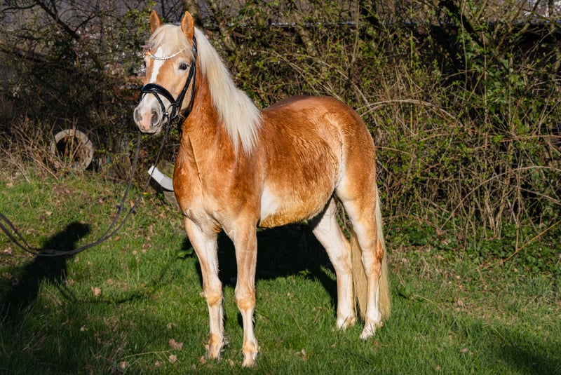 For sale is the 3-year-old Haflinger gelding Strombi, from the pairing liz. Steinadler x Emilia. He currently has a height of about 155 cm. Strombi is currently being gently backed and is already showing a willingness to learn and promising qualities under saddle. He is fearless and has a strong nerve both in a group and alone in the field. In daily handling, he always presents himself as well-behaved and reliable. The gelding is accustomed to living in a herd and is well socialized. For further information or to arrange a viewing appointment, I am also available via WhatsApp at 01774957884.