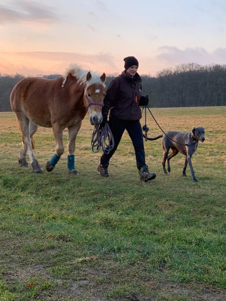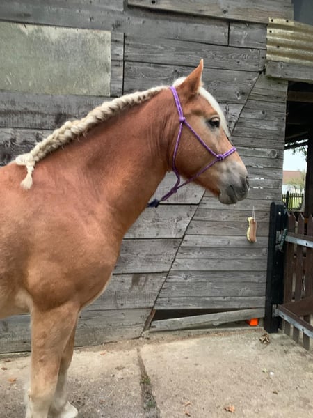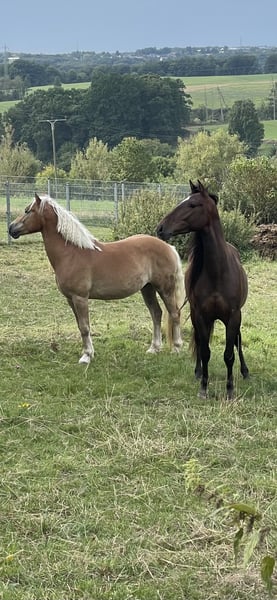 Muss leider unseren lieben und sehr menschenbezogenen Wallach verkaufen. Wir haben ihn mit 3,5 J. roh gekauft als zukünftiges Familienpony. Der Uran lebt im Offenstall mit einem Wallach zusammen. Er ist sehr verspielt und tobt gerne rum. Kennt Hunde und kann mit dem Hund zusammen Ausreiten. Kennt Kinder, kann von denen geputzt und geführt werden. Da er viel Go hat, ist er kein Kinderpony und auch nichts für unsichere oder ängstliche Reiter. Er kann auch von gut reitenden Jugendlichen geritten werden. Der Uran braucht eine klare, liebevolle und konsequente Hand. Mit dem richtigen Reiter ( Bezugsperson) an seiner Seite, ist er arbeitswillig, versucht zu gefallen und hat Potenzial für mehr. Er ist sehr ausdauernd, kompakt und wendig. Er geht überall durch, auch durch fließende Gewässer. Ideal für Wanderritte geeignet. Für ein Pony hat er einen raumgreifenden Schritt. Zeigt auch mal einen starken Trab. Sein Galopp ist etwas flach, aber dafür sehr gut zu sitzen. Dem Alter entsprechend geritten in allen 3 GGA und hat auch schon paar kleine Sprünge im Gelände unter dem Reiter gemeistert. Da es bei uns im Ort nur einen kleinen Reitplatz gibt, macht mir es kein Spaß dort zu reiten und dementsprechend hat der Uran wenig Übung dort. Platzarbeit ist noch nicht ganz sein Ding, aber er gibt sein bestes. Er liebt es im Gelände unterwegs zu sein, ob alleine oder zu zweit. Wir sind auch paar mal zu dritt ausreiten gewesen mit einem fremden Pferd und es hat ihm überhaupt nichts ausgemacht. Bei Fragen einfach melden Paar Eckdaten: -Geburtsdatum: 06.04.2021 ( halbes Papier, der Papa ist der Hengst Steeger und die Mama ist Quaterhorse ) ( auf dem letzten Bild zu sehen) -Stockmass: ca. 1.45 ( kräftig gebaut) -am 01.08.2024 gelegt -Am 24.06.2025 war beim Zahnarzt. -Hufe werden alle 8-10 Wochen gemacht - kennt Boxenhaltung - kennt Offenstall Das ist ein Privatverkauf Die Beschreibung wurde durch meine Eindrücke erstellt. Bitte nur ernst gemeinte Anfragen Keine Schulbetriebe Kein Kinderpony Keine Anfänger/ ängstliche Reiter Probereiten möglich, dafür berechne ich 35€ . Der Betrag wird beim Kauf abgezogen.