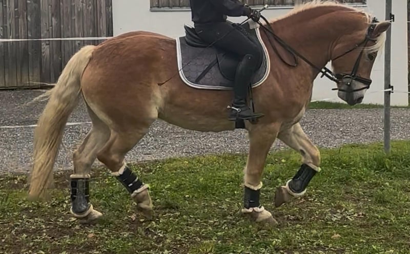 Verkaufe ausdrucksvollen Haflinger Wallach – Geburtsjahr 2017, Stockmaß 156 cm wurde aktuell nicht gemessen Vater: Aragon Atlantik wird aufgrund von Zeitmangel verkauft. Er verfügt über top Grundgangarten und wurde in der Dressur sowie im Springen gefordert. Er ist kein Anfängerpferd! Benötigt einen selbstsicheren Reiter mit Gefühl und Konsequenz. In der Herde ist er eher ranghoch. Am Turnier wurde er noch nicht vorgestellt, er wurde aber an verschiedenen Reitplätzen geritten wo er aber immer die Sicherheit des Reiters braucht. Atlantik ist schmiede- und verladefromm. Geht zurzeit barhuf. Er wird derzeit nicht geritten aufgrund von fehlendem Viereck. Bei Interesse oder weiteren Fragen bitte einfach melden.