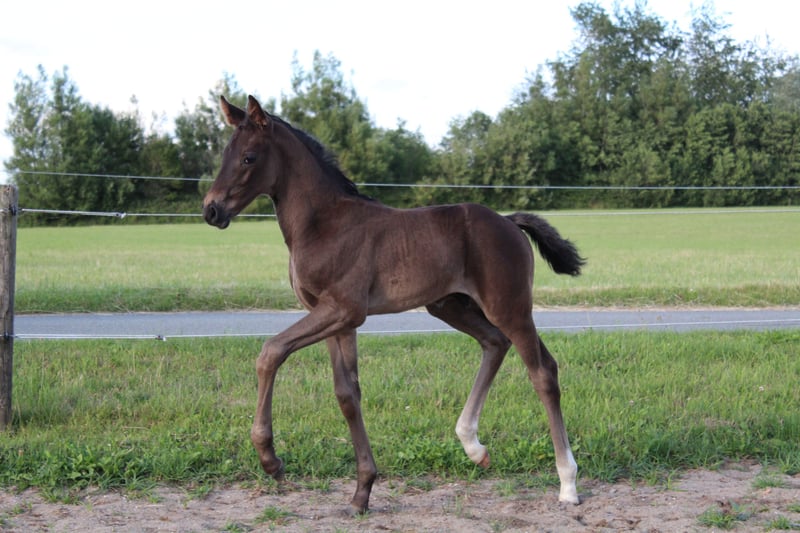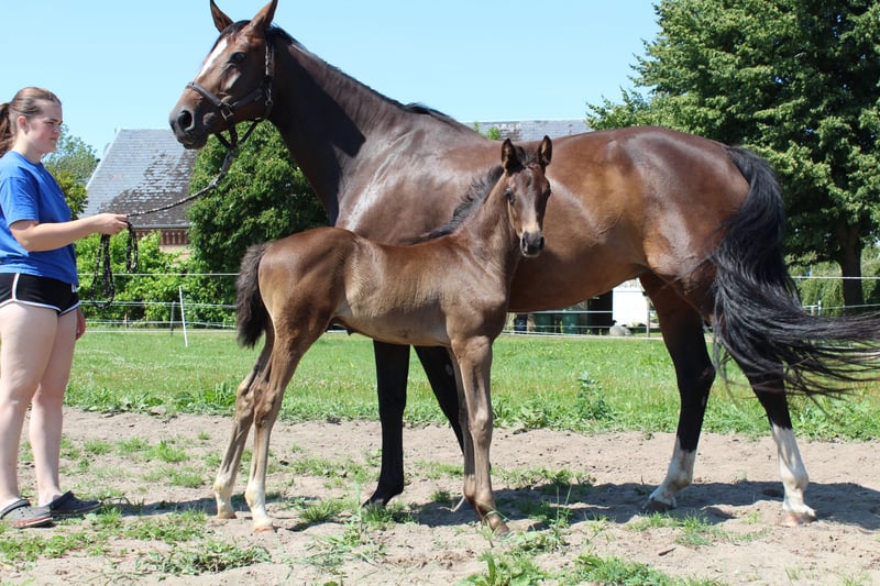 This talented young man impresses with his elegant movements and balanced temperament. He is well-suited for dressage and has the potential to prove himself in higher classes. Beautiful stallion foal by Cadeau Noir from the proven Boney M – Whitestar – Lauries Crusador xx maternal line is for sale. His sire CADEAU NOIR is the reigning U25 European Champion, team European Champion, and double German Champion. This young talent combines the best dressage blood with a flawless character: He is growing up in a herd environment on spacious pastures, is lovingly cared for, well-socialized, and educated according to his age. He is halter-trained, allows himself to be touched anywhere without problems, shows strong nerves, is people-oriented, and very curious – a true charmer with a clear perspective for sport and breeding. If you are interested or have further questions, we look forward to your message. Feel free to visit us to get to know Cosimo in person!