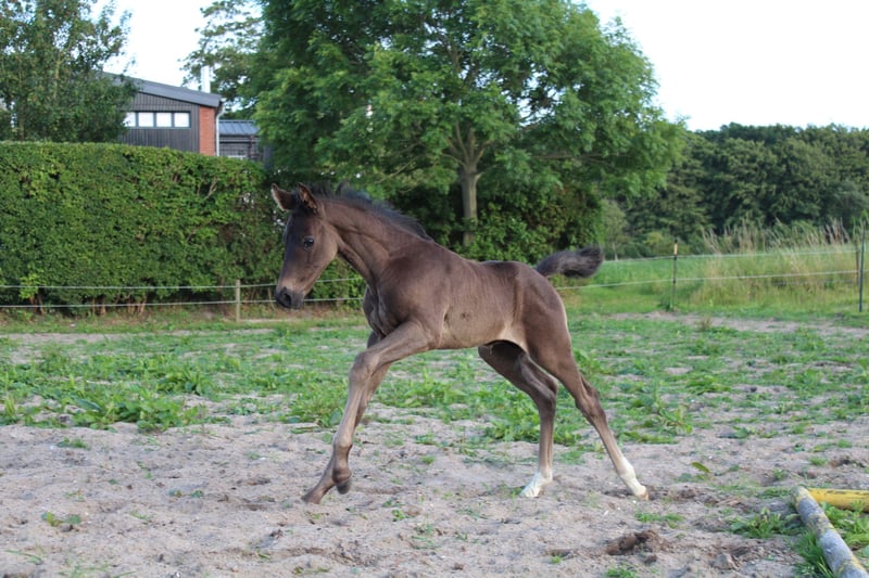 Dieser talentierte junge Mann überzeugt durch seine eleganten Bewegungen und sein ausgeglichenes Wesen. Er ist bestens geeignet für den Dressursport und hat das Potenzial, sich in höheren Klassen zu beweisen. Wunderschönes Hengstfohlen von Cadeau Noir aus der bewährten Boney M – Whitestar – Lauries Crusador xx-Mutterlinie zu verkaufen. Sein Vater CADEAU NOIR ist amtierender U25 Europameister, Mannschafts-Europameister und doppelter Deutscher Meister Dieses junge Talent vereint bestes Dressurblut mit einem einwandfreien Wesen: Er wächst artgerecht im Herdenverband auf weitläufigen Wiesen auf, ist liebevoll betreut, bestens sozialisiert und dem Alter entsprechend erzogen. Er ist halfterführig, lässt sich problemlos überall anfassen, zeigt sich nervenstark, menschenbezogen und sehr neugierig – ein echter Charmeur mit klarer Perspektive für Sport und Zucht. Bei Interesse oder weiteren Fragen freuen wir uns auf Ihre Nachricht. Besuchen Sie uns gerne, um Cosimo persönlich kennenzulernen!