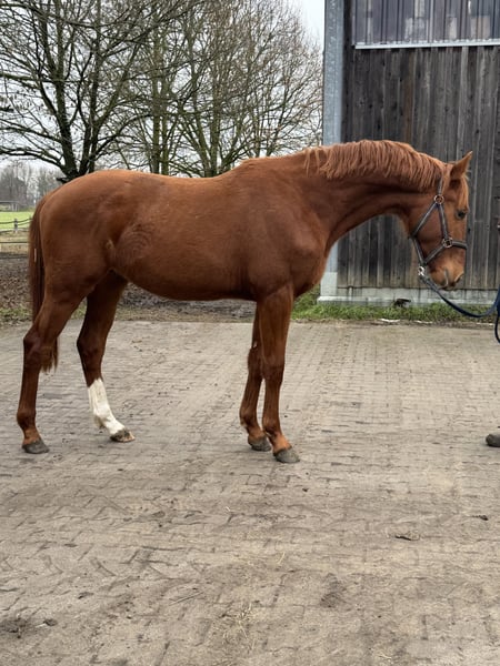 For sale is a stylish, foaled in 2024, chestnut stallion with excellent dressage lineage: Kjento x Crosby x Spielberg. Thanks to his powerful hindquarters, good balance, and elastic movement, Kemble is highly interesting not only for dressage but also for show jumping. His pedigree and his movement suggest versatile sporting potential. In handling, Kemble is well-behaved and uncomplicated. He is farrier- and loading-friendly, making him well prepared for his further training. He is expected to reach a height of approximately 16.1–16.2 hands and is thus an ideal mare horse for self-education—suitable for both ambitious leisure riders and competitive dressage and jumping. A fantastic young horse with great quality, character, and versatile potential. Please feel free to contact us if interested—Kemble is looking forward to a loving new home. 🐎