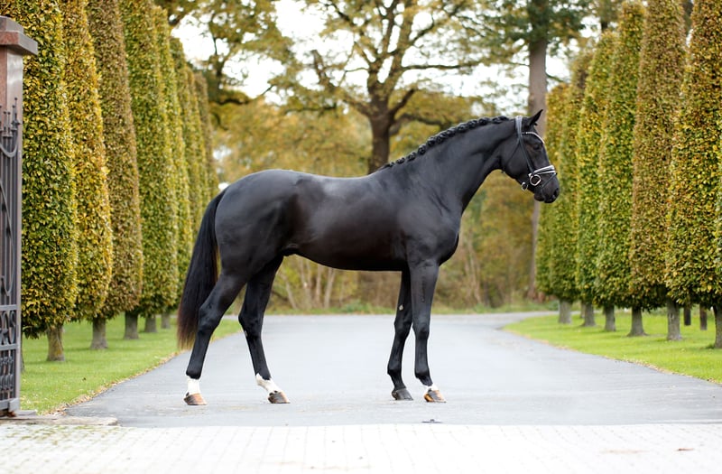 Einer wie Keiner! Hochattraktiver, imposanter Schönling von homogen hervorragender Grundqualität und toller Lernbereitschaft. Bereits nach ein paar Grundschulbesuchen in den Basics relativ gefestigt und mit schöner Einstellung im leichten Arbeitsbeginn absolut überzeugend. Ein rundum interessantes Nachwuchspferd für den besonderen Auftritt. Tüv gut.