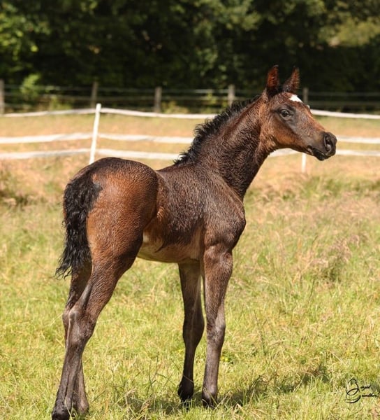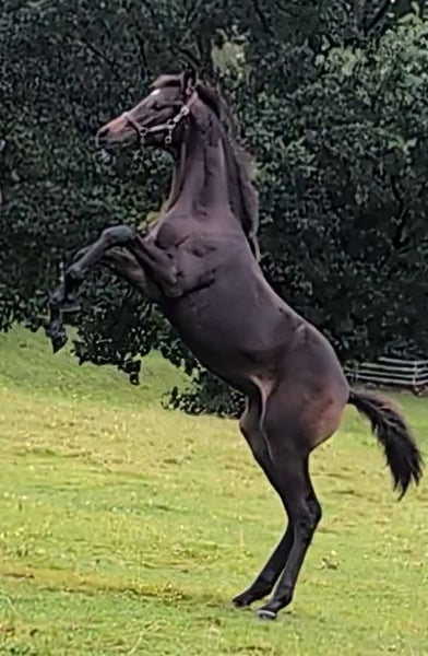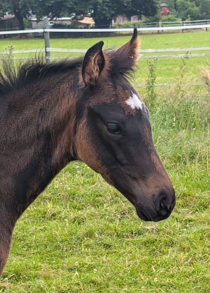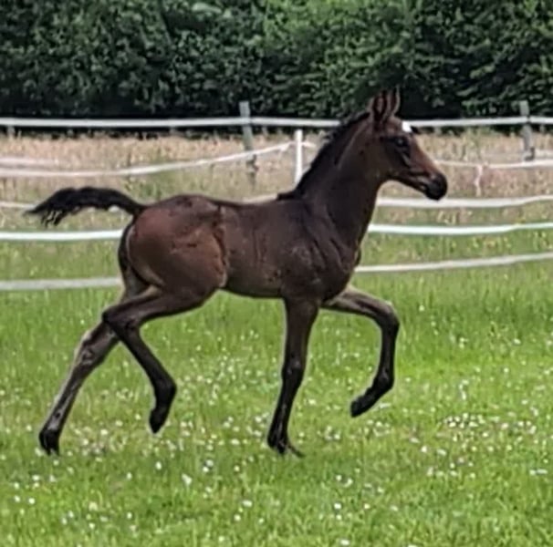 Hermoso, adorable y fuerte pequeño semental. Muy orientado a las personas. Los mejores sementales Totilas, De Niro y Royal Highness en el pedigrí. La hermanastra de la madre es Finest black Lady, que fue finalista en el Campeonato del Mundo de Caballos Jóvenes de Doma Clásica y fue entrenada por Benjamin Werdl.