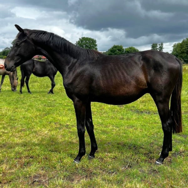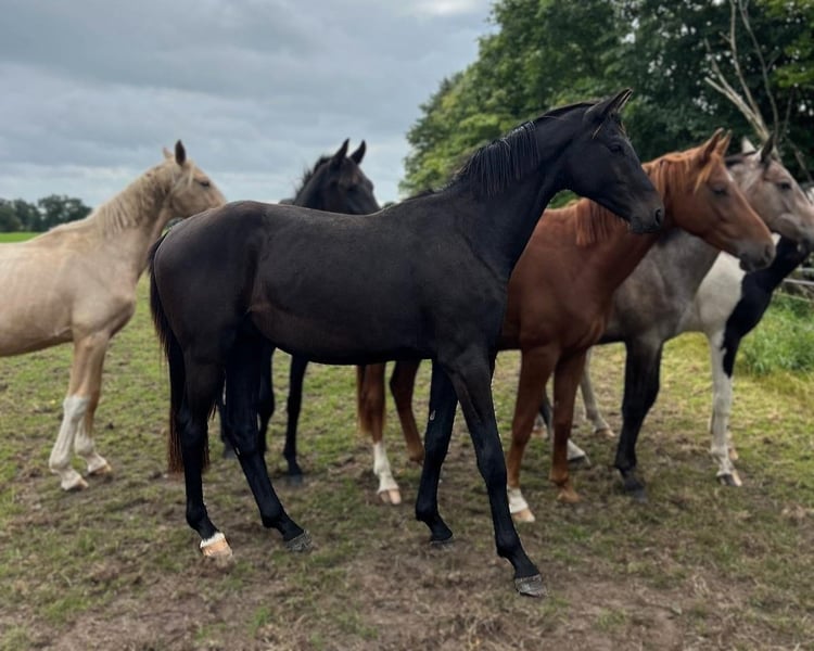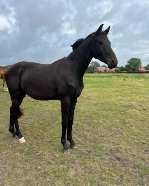 This high-quality stallion has three excellent, elastic, and ground-covering basic gaits. Beautifully built and in noble jet black! He impresses with his outstanding character, is regularly handled, pleasant to deal with, and free from vices. He is optimally developed and will easily grow into his work. Ideal for ambitious amateurs with young horse experience as well as for professionals. Due to his high basic quality and first-class lineage, he is also extremely interesting for the upper levels of dressage sport. In perfect health, from the best breeding, in optimal condition. Vaccinated, dewormed, microchipped, regularly presented to the farrier, and easy to shoe and load. Directly from the breeder. We would be happy to show you this wonderful young horse in person on site! Contact us also via WhatsApp: +49 176 55323449.