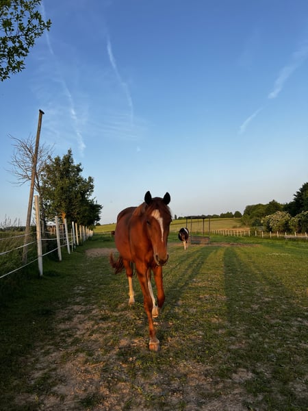 Zum Verkauf steht mein wunderschöner 3 jähriger Hannoveraner Wallach namens Ramino. Er ist ein verspieltes und neugieriges Pferd , welches sehr viel Spaß bereitet. Ramino ist seit März 2023 in meinem Besitz. In dieser Zeit habe ich viel Bodenarbeit sowie Longentraining mit ihm gemacht. Er kennt bereits einen Sattel sowie das auf- und absteigen eines Reiters. Aktuell ist er zum Beritt um in allen Grundgangarten auch unter dem Sattel sicher zu werden. Bei mir stand er die gesamte Sommerzeit auf der Weide , im Winter kam er nur über Nacht oder bei extrem schlechtem Wetter in die Box. Er wird nicht an Anfänger oder unerfahrene Reiter verkauft, da er aufgrund seines Alters jemanden braucht der ihm klare Grenzen setzt. Wenn man das tut kann er ein wirklich treuer Begleiter sein der immer sein bestes gibt. Für weitere Infos können sie mich gerne unter der Nummer 017634340394 kontaktieren