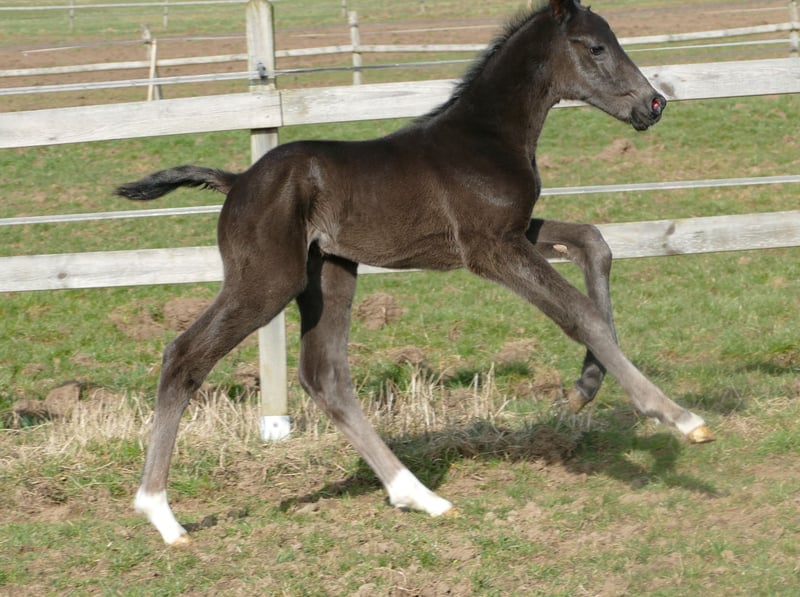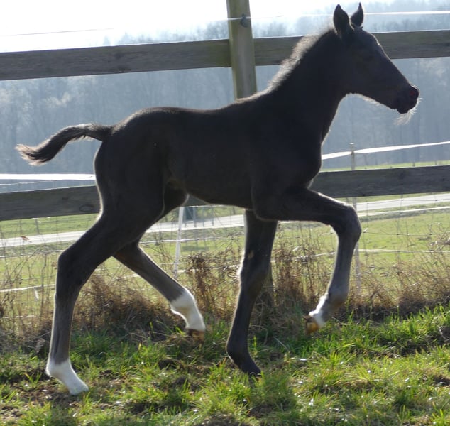aus sehr guter, großrahmiger ,korrekter Stute von Livaldon-Dancier. Gerade 2 Tage alt bewegt er sich bereits locken und fröhlich. Weitere Fotos und Videos werden auf telefonische Anfrage gerne per whattsapp versendet.
