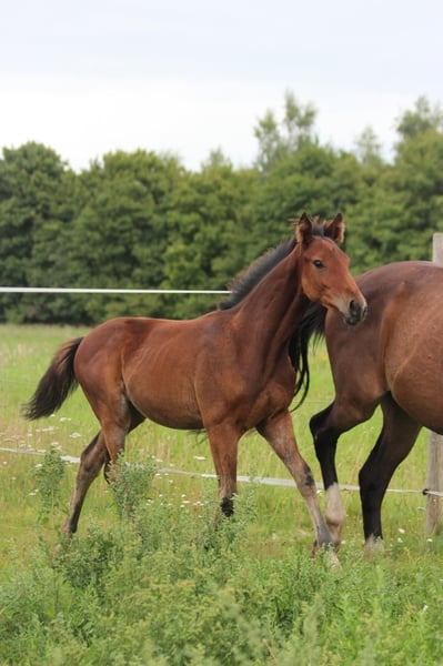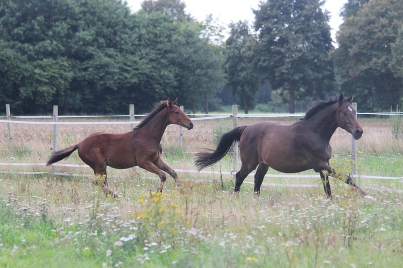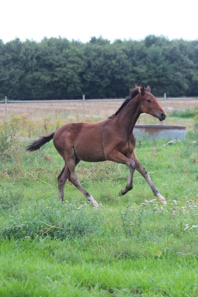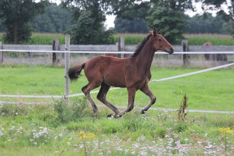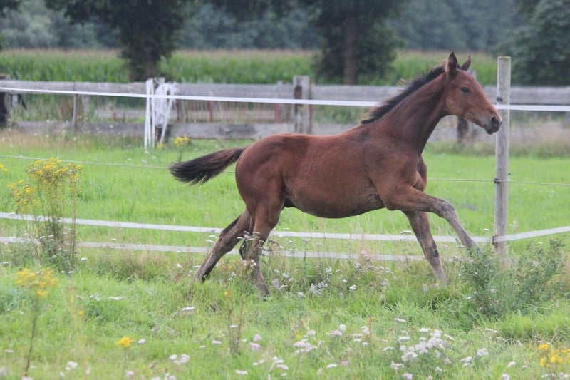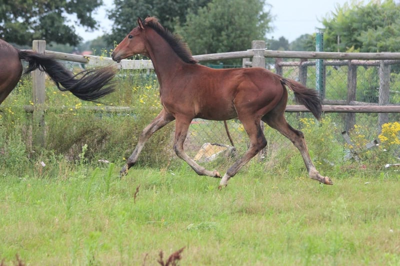 Das ist Flashdance. Er ist am 31.3.25 hier bei uns zu Welt gekommen und wächst seitdem fröhlich mit seiner Mama und Spielkameraden mitFamilienanschluss direkt bei uns am Haus auf. Flash, wie wir ihn hier nennen, ist mittlerweile 6 Monate alt, Neugierig, verspielt und hat 3 tolle Grundgangarten . Er ist gesund, regelmäßig entwurmt und liebt es, am Po gekrault zu werden. Mit dem Fohlen A B C wie zum Beispiel das Halftern , wurde begonnen, es muss aber weiterhin geübt werden. Flash kennt Trecker, Hunde und Kinder. Er stammt vom Celler Landgestüt Hengst Figari ab, seine Mutter ist eine Vollblutstute. Diese zeigt sich bei uns als entspannte Freizeitpartnerin, sowohl im Gelände, als auch im Springen Da Flash im Spiel hier auch schon mit Freude über Äste hüpft, kann ich ihn mir in Zukunft sehr gut als vielseitiges Freizeit/Springpferd vorstellen. Auf den letzten Bildern sieht man seine Mutter in Aktion Bei Fragen und Interesse gerne melden. Er kann ab sofort in sein neues zu Hause ziehen. Wir können Flash auch gerne bringen.