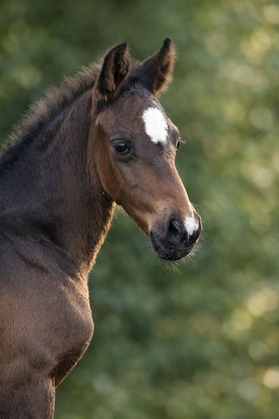 Zum Verkauf steht ein außergewöhnlich typvolles und modernes Hengstfohlen mit viel Ausdruck, Charme und hervorragender Abstammung. Dieses langbeinige Nachwuchspferd begeistert bereits jetzt durch seine Eleganz, seine Präsenz und einen harmonischen Körperbau. Jetzt schon überzeugt er mit einer sehr guten Aufmachung, viel Übersicht und einer natürlichen Ausstrahlung, die sofort ins Auge fällt. Ein echter Hingucker für Liebhaber moderner Dressurpferde. Seine Abstammung vereint bewährte Dressurlinien, die für Rittigkeit, Qualität der Grundgangarten und Leistungsbereitschaft bekannt sind: Vater: Diamantenglanz – moderne Sportpferdegenetik mit ausdrucksstarken und bewegungsfreudigen Nachkommen. Muttervater: Von und Zu – steht für Qualität, Rahmen und sehr gute Grundgangarten. Muttermuttervater: Rotspon – eine der etabliertesten Dressurlinien, bekannt für Rittigkeit, Elastizität und Charakterstärke. Damit bringt dieses Fohlen beste Voraussetzungen für eine erfolgreiche Zukunft im Dressursport sowie auch für eine interessante Perspektive in der Zucht mit. Das Hengstfohlen zeigt sich aufmerksam, neugierig und menschenbezogen. Er ist altersgemäß entwickelt, korrekt gebaut und überzeugt durch seine langen Beine, seine elegante Linienführung und seine natürliche Präsenz. Sein Gesamtbild vereint Typ, Eleganz und moderne Sportpferdequalität – Eigenschaften, die ihn zu einer echten Zukunftshoffnung machen. Ein besonderes Fohlen für ambitionierte Reiter, Aufzüchter oder Züchter, die Wert auf moderne Dressurpferdequalität legen. Weitere Informationen gerne auf Anfrage.
