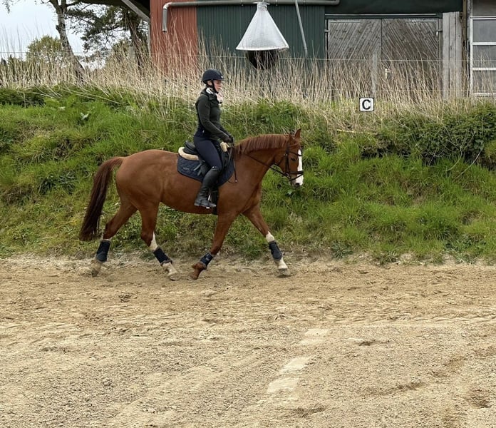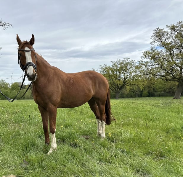 Delani (Dancier x Rotspon) ist eine hübsche, 161 cm große Hannoveraner Fuchsstute mit einem tollen Gangbild. Sie ist 2016 geboren, schmied- und verladefromm und selbstverständlich regelmäßig entwurmt. Sie wurde regulär geritten (A-Niveau), stand jedoch das letzte Jahr überwiegend und braucht daher eine erfahrene, einfühlsame Hand, die sie ruhig und konsequent zurück ins Training führt. Auf Turnieren habe ich sie nicht vorstellen können. Corona und unsere beiden Mädels, die sich auf den Weg gemacht haben, ließen es nicht zu. Delani verfügt über Go und ist deshalb nicht für Anfänger geeignet. Wir suchen nach einem passenden neuen Besitzer mit Gefühl, Geduld und Pferdeverstand. Mit der richtigen Person zeigt sie Potenzial, Lernfreude und schöne Bewegungen. Delani bringt eine Basis mit, auf der in der Blüte ihres Lebens angeknöpft und aufgebaut werden kann. Sie ist noch sehr unverbraucht und ist sowohl für den anspruchsvolleren Freizeitreiter als auch fürs Turnier geeignet. Delani wird nur in fördernde, sensible und zuverlässige Hände abgegeben, wo sie Zeit und eine klare Struktur bekommt. Bei ernsthaftem Interesse freue ich mich über eine Nachricht und ein persönliches Kennenlernen.