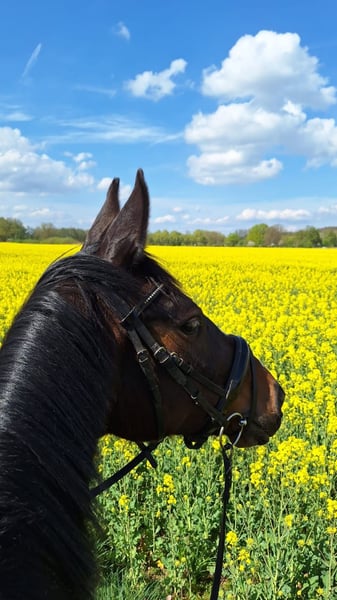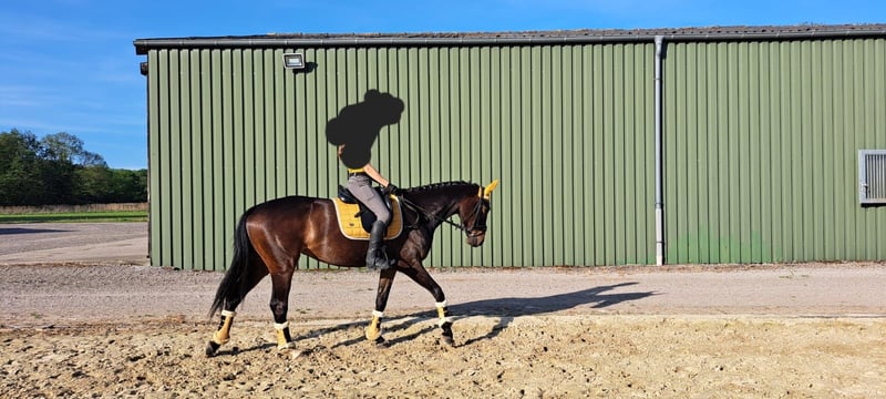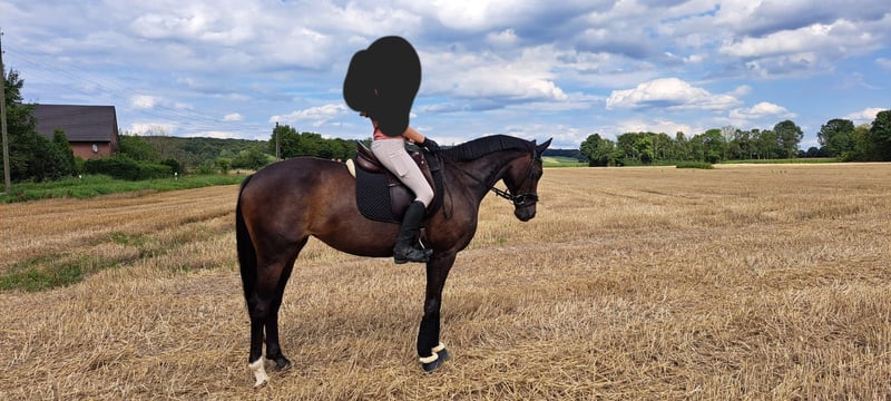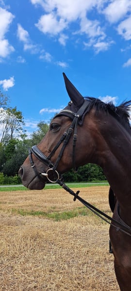 Schweren Herzens, aufgrund einer Bestandsverkleinerung, suchen wir für diese bildhübsche Stute einen einfühlsamen, erfahrenen Reiter, ein liebevolles Zuhause. Dance Monkey, genannt Kaya, ist eine 10-jährige Hannoveraner Stute und circa 1,62 m groß. Sie ist absolut brav, gesund und unkompliziert im Umgang, verlade- und schmiedefromm sowie sehr verträglich mit anderen Pferden. Beim Reiten möchte sie gerne immer alles richtig machen und hat entsprechendes Go. Sie verfügt über drei sehr gute Grundgangarten, ist unerschrocken und reagiert auf ganz feine Hilfen. Dance Monkey wurde von uns freizeitmäßig geritten, wurde aber beim Vorbesitzer in Dressurpferde A/ Dressurreiter A erfolgreich vorgestellt. Beim Springen hat Dance Monkey bisher wenig Erfahrung gesammelt, sie ist bei uns aber auch brav über kleine Hindernisse gegangen. Working Equitation macht sie auch absolut brav und gerne. Aufgrund ihrer Abstammung und ihrer Schönheit können wir uns Dance Monkey ebenso sehr gut als Zuchtstute vorstellen. Da Dance Monkey gelegentlich in stressbedingten Ausnahmesituationen webt, wäre eine Paddockbox, eine Außenstallhaltung oder eine Box mit viel Weidegang für sie wünschenswert Röntgenbilder liegen bereits vor. Eine AKU kann jedoch gerne vom Käufer gemacht werden.