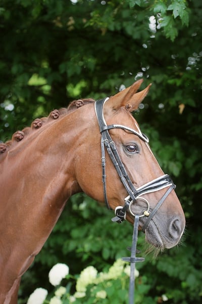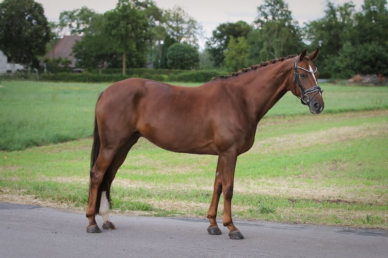For sale is an impressive Hanoverian mare, born in 2015. This elegant dark chestnut lady not only impresses with her attractive appearance, but also with her talent and versatility in dressage. - Breed:** Hanoverian - Sex:** Mare - Year of birth:** 2015 - **Color:** Dark chestnut - Height:** 165 cm - **Discipline:** Dressage This mare is always motivated and willing to learn, which makes her an ideal partner for ambitious dressage riders. She has excellent basic gaits and a balanced, friendly personality, which also makes her a pleasure to handle on a daily basis. If you are looking for a talented dressage horse that cuts a fine figure both in the dressage arena and in the stable, then this Hanoverian mare could be just right for you. Please contact us if you are interested or for further information. We look forward to introducing this special mare to you personally.
