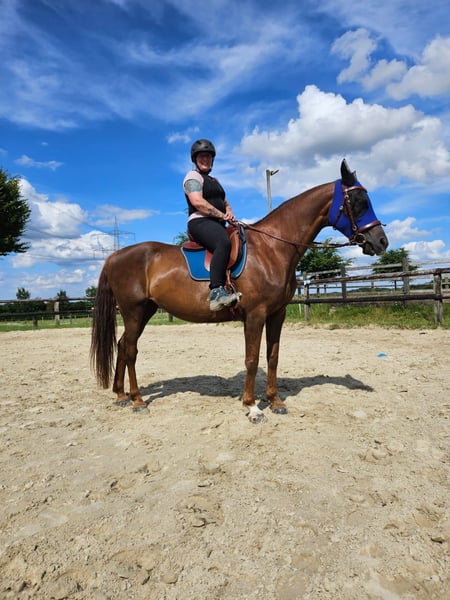 Ich habe mich schweren Herzens dazu entschieden, meine Visi abzugeben, um jemanden zu finden, der besser zu ihr passt als ich. Ich habe sie mit 2 3/4 direkt von der Züchterin gekauft und selber nach Peter Kreinberg ausgebildet (mit einer Trainerin an meiner Seite). Sie kennt Arbeit am Leitseil, an der Longe und Doppellonge, mit 4,5 Jahren schonend angeritten. Es stellte sich heraus, dass sie einen KS Befund hat, der aber bei entsprechendem Training keine Probleme bereitet. Sie ist sehr meinungsstark, eher ranghoch, mit "special effects*, aber immer händelbar. Ideal for jemanden, der etwas mehr Temperament liebt! Zuletzt habe ich im September Oktober probiert, sie mit Halsring zu reiten. Seitdem habe ich nicht mehr drauf gesessen. Ihr fehlt derzeit Muskulatur, die man aber in 2 bis 3 Monaten konsequentem Training wieder aufbauen kann. Näheres gerne persönlich. Platz vor Preis!