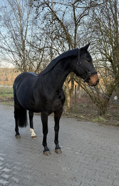 We are offering our 11-year-old mare for sale. Rapunzel passed an excellent broodmare performance test at age 3 with a score of 8.25. She is a picture-perfect broodmare with outstanding movement and an exceptional dam line. She is expecting a foal by "Sir Gribaldi" in April 2026. Her sire, Bordeaux, needs no further introduction – her dam line has produced many successful sport horses. She is also the sister of "Secret of Bavaria," who finished 7th in the Bundeschampionate final and competed in the second round for the World Championship selection. Rapunzel has already produced several outstanding foals, including a high-priced premium filly by Secret. She is well-trained under saddle, very easy to handle, and has a calm temperament. She gets along well with other horses and is safe for the farrier. An absolute top-quality broodmare for serious breeding programs.