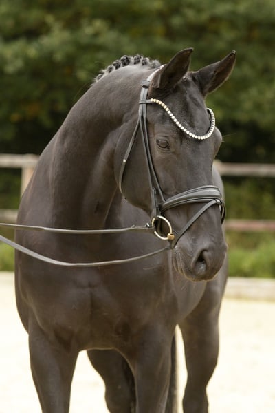 For sale is an 11-year-old black mare by Destano. She has numerous competition successes, including wins at the advanced level. She is very reliable and motivated in daily work and consistently performs well under saddle. Further information available by phone or WhatsApp at +49 1512 9052971.