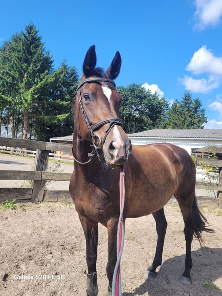 For sale is a Hanoverian mare. Due to her pedigree, she brings very good basic quality. At 4 and 5 years old, she was presented as a riding horse and dressage horse at the A level. A small veterinary examination from April 23rd shows no findings. Since May, she has been back under saddle and always wants to please. Very easy to ride, but not suitable for complete beginners. She had a foal in 2013 and 2014 with the previous owner. She is vaccinated, dewormed, and has been seen by an osteopath. She has no vices. Compatible with herds and low in rank. Currently, she is barefoot and manages very well with it. She not only impresses with her appearance but also with her loving character. She is very cuddly and absolutely affectionate, enjoying every little attention. To avoid riding tourism, I charge €20 for trial rides, which will be deducted from the purchase price.