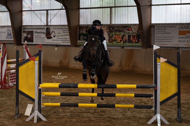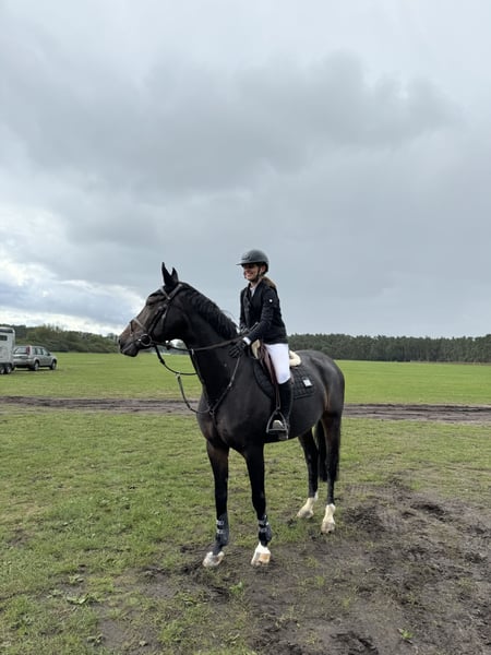 Carluccia has a calm and gentle temperament and is easy to handle for everyone. She is pleasant to ride and well-behaved in the terrain as well as in unfamiliar environments, including riding and jumping without a saddle. At eight years old, she was placed up to M show jumping and was subsequently trained for A*/A** level jumping. Over the years, she had to take a break from competition due to injuries a few times (more details gladly provided by phone). She is now better suited as a leisure horse or for small competitions in the WBO/E(/A) classes. Thanks to her reliable nature, she is also suitable for younger or more nervous riders.
