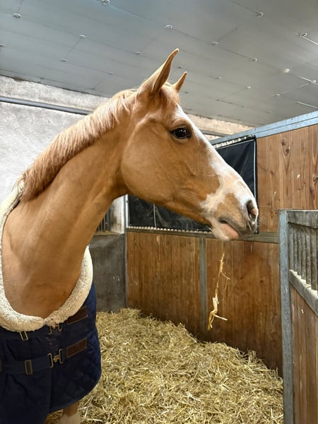 Se ofrece nuestra hermosa y colorida yegua Hannoverana de pelaje fuego, ideal para jinetes jóvenes, niños o amateurs ambiciosos que buscan un caballo que llame la atención y acumule trofeos. Esta preciosa yegua de pelaje fuego, nacida en 2014 y descendiente de Commissario x Quidam de Revel, impresiona no solo por su apariencia llamativa, sino también por su gran cantidad de éxitos deportivos, su calidad excepcional y su disposición para el salto. Cookie demuestra en el salto una técnica impresionante y mucho potencial para saltar. Destaca especialmente por su espíritu combativo y su absoluta honestidad en el recorrido, cualidades que en los últimos años la han convertido en una yegua perfecta para júnior. Ha participado y obtenido resultados en numerosas competiciones nacionales e internacionales en saltos hasta 1,45 m, y cuenta con destacadas participaciones en pruebas por equipos para júnior, Grandes Premios y grandes campeonatos como los Hagen Future Champions y los Campeonatos Nacionales de Jóvenes de Alemania. Cookie es una verdadera maestra y acumuladora de trofeos para jinetes y amazonas que buscan diversión y fiabilidad en el recorrido, además de grandes éxitos. A pesar de su carácter fuerte, nunca se vuelve difícil, por lo que es ideal para un niño, júnior o amateur ambicioso. Para más información, videos o interés, no dudes en contactarme (preferiblemente por WhatsApp) al 0176 2427 2427.