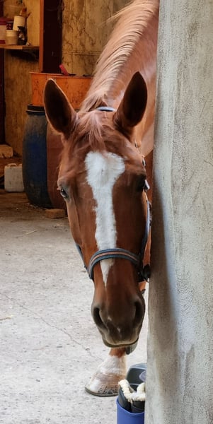 Our mare is honest, well-behaved, and easy to ride for most riders, but she is not suitable as a beginner's horse. Due to an issue with both front legs, she is limited in demanding dressage work or jumping training. She has been trained up to L-level dressage, and has achieved placements in A-Dressage. She has also been ridden up to A-level in jumping. She truly enjoys cross-country riding – whether alone or in a group, she remains calm and reliable. She also loves ground work. In handling, she is a truly trustworthy partner: very affectionate and human-oriented, she is uncomplicated when it comes to shoeing and loading, making daily handling easy. We are looking for a loving home for her with a family environment, where she can have plenty of turnout and be appreciated as a leisure and trail horse.