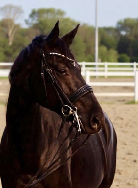 For sale is a 14-year-old dark bay mare by Lord Lauri x His Highness, standing approximately 1.67 meters at the withers. She has been gently trained up to the Advanced level and has achieved success up to S class. What makes this mare so special is not only evident under saddle. It begins with her incredibly charming and affectionate character and is complemented by her three very expressive basic gaits. In everyday handling, she is very straightforward and always manageable. She interacts kindly with her fellow horses. She is accustomed to stable life and her daily turnout on pasture or paddock. Loading and farrier visits are completely hassle-free for her. Even in unfamiliar surroundings, she remains calm and well-behaved. Every day, she impresses with a positive and motivated attitude. She wants to please and always enjoys her work. She is equally easy to ride in a snaffle bit or on a double bridle. She is never mean or grumpy. Her stunning appearance is an added highlight. She is very expressive and has a striking look that immediately catches the eye. This mare is a very honest partner, making her especially suitable for nervous, insecure, or young riders who want to learn and grow with her. She is currently in professional training. The mare is healthy and comes with a TÜV inspection from 2023. This is not an urgent sale. She is being offered solely due to lack of time to ensure she finds a good new home. Only inquiries by phone will be answered, but we are happy to do so. :-) Location of the horse: Jüchen