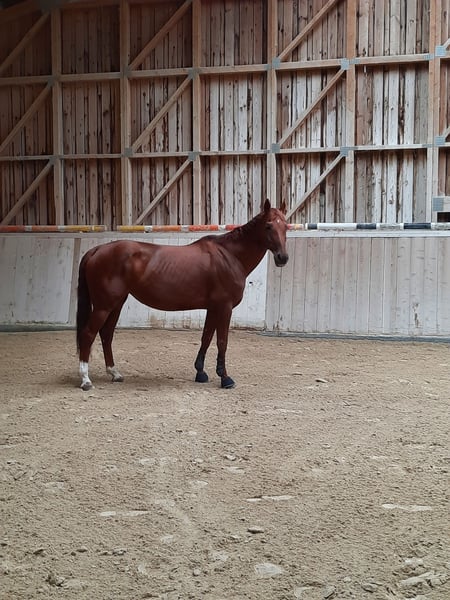 Ta elegancka 14-letnia klacz Hannoveraner o wzroście 163 cm łączy wyraziste ruchy, wysokiej jakości linie krwi oraz wrażliwy, zmotywowany charakter. Jest dobrze ugruntowana w podstawowym szkoleniu ujeżdżeniowym (E–A) i była głównie użytkowana rekreacyjnie. Chociaż nie ma doświadczenia w zawodach, prezentuje doskonałe podstawowe ruchy i solidne wykształcenie, co sprawia, że jazda z nią jest bardzo przyjemna. Szczególnie chętnie wybiera się na wycieczki terenowe, gdzie uważnie i z ciekawością eksploruje nowe ścieżki. Ze względu na jej wrażliwą naturę potrzebuje doświadczonego, empatycznego i uczciwego jeźdźca, który zapewni jej bezpieczeństwo i spokojne prowadzenie. Nie jest to koń dla początkujących, ale pod opieką doświadczonego jeźdźca rozwija się w lojalną i zmotywowaną partnerkę. Ze względu na osobiste powody sprzedaję ją z ciężkim sercem. W przeszłości miała epizody laminitis spowodowane leczeniem farmakologicznym, które jednak całkowicie się wygoiły. Od tego czasu jest stabilna i bez dolegliwości.
