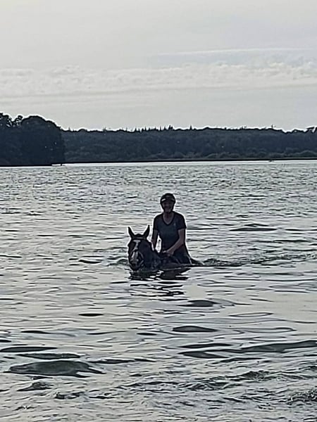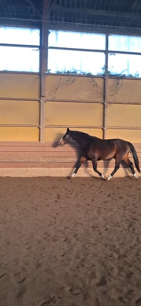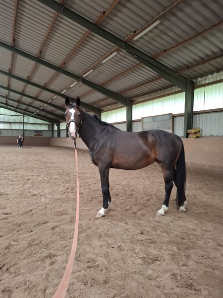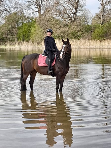 Schweren Herzens müssen wir uns von unserer Hannoveraner Stute Harley, liebevoll "Snöd" genannt, trennen. Unsere 16 jährige Snöd ist ein wundervoller Allrounder und ein echtes Herzenspferd. Sie überzeugt jeden Tag durch ihren wundervollen Charakter und ihre Motivation unterm Sattel. Ihre menschenbezogene, süße und verspielte Art machen sie auf dem Hof sehr beliebt. Besonders viel Spaß zeigt sie bei der täglichen Dressurarbeit und Ausritten. Auch in der Bodenarbeit zeigt sie sich immer sehr talentiert und aufmerksam. Kleine Tricks wie Küsschen geben kann Snöd auch;) Im Sommer liebt sie es Baden zu gehen und schwimmt dann auch gerne (sie ist keineswegs wasserscheu). Ins Gelände geht sie sowohl in der Gruppe als auch alleine und ist dabei immer sehr brav, unerschrocken und zuverlässig. Beim Reiten ist sie immer kopfklar. Sie bockt, steigt und tritt nicht und selbst bei einem Schreck hüpft sie maximal einmal zu Seite. Ein absolutes Verlasspferd, auch im Winter! Im Springen ging sie unterm Reiter bis A-Springen und im Freispringen in der Halle bis L-Springen. Allerdings ist das Springen aufgrund eines ausgeheilten Sehnenschadens hinten rechts nicht mehr möglich. In der Dressur glänzt Snöd dabei um so mehr. Hierbei wurde sie grundlegend auf A- Niveau gearbeitet. Auch einzelne L- und M-Lektionen wie Schulterherein, Außengalopp, Kurzkehrt und Traversalen kommen im Training vor. Beim Reiten ist sie, nach dem sie warm ist, gerne fleißig unterwegs. Auf kleinen Hof Turnieren zeigte sie sich stets von ihrer besten Seite und auch bei Reitabzeichen, wie dem RA5, RA4 oder dem LA5 hat sie alles gegeben und mit ihrer gutmütigen Art viele Richter überzeugt. Da Snöd aber das Hängerfahren nicht mag und wir ihr den Stress ersparen wollen, möchten wir sie nicht als Turnierpferd abgeben. Wir wünschen uns für Snöd einen Reiter, der sie reiterlich weiterhin fordern kann und der ein Pferd sucht, mit dem man vielseitig Spaß haben kann. Alltagstrubel auf dem Hof ist sie gewöhnt und dabei immer gelassen. Schreiende Kinder, Hunde, Katzen, Trecker, LKWs usw. bringen sie nicht aus der Ruhe. Snöd ist Schmiedefromm (trägt vorne zwei Eisen) und auch beim Tierarzt total unkompliziert. Die Zähne wurden jährlich gemacht, der Sattel regelmäßig kontrolliert und angepasst und sie wurde zudem regelmäßig entwurmt, geimpft und osteopathisch vorgestellt. Sie hat einen Ton, der tierärztlich abgeklärt ist und sie als Freizeitpferd in keiner Weise einschränkt. Da Snöd in bestimmten Situationen an der Hand sehr selbstbewusst werden kann übergeben wir sie nur an erfahrene Reiter! Wir wünschen uns für Snöd ein tolles Zuhause, in dem sie genauso sehr geliebt wird, wie bei uns und wo sie als Freizeitpferd weiterhin gefordert und beschäftigt wird. Sie steht aktuell in Boxenhaltung mit zweimal täglichem Gang aufs Paddock. Da sie ein sehr bewegungsfreudiges Pferd ist, wäre ein Offenstall für sie optimal. Sie ist sehr auf ihre Herde bezogen und rangmittig bis hoch. Da sie duch zu lange Fresspausen (länger als 3h) Magenprobleme bekommt, wäre ein gutes Futtermanagemant Voraussetzung. Wenn das funktioniert, hat sie mit dem Magen auch keine Probleme. Da sie vom Typ her ein sehr schlankes Pferd ist, kann sie bei genügend Bewegung 24/7 Heu bekommen, ohne großartig dick zu werden. Uns ist es sehr wichtig, dass sie in gute Hände kommt und bei ihren nächsten Besitzern ihren Endplatz finden darf. Platz vor Preis! Ausgewähltes passendes Zubehör u.a. ein Dressursattel von Passier, eine super sitzende Weidedecke von Amigo und eine Trense von Bridlery würden wir Snöd in ihr neues Zuhause mitgeben. Um Reittourismus vorzubeugen nehmen wir für das Probereiten 30€, die aber ggf. später mit dem Kaufpreis verrechnet werden. Wenn ihr das Gefühl habt, dass Snöd zu euch passen könnte, dann schreibt uns gerne;)