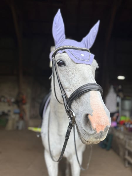Peggy ist eine wundervolle Hannoveraner Schimmelstute (2008), die man einfach ins Herz schließen muss. Sie ist ein echtes Verlasspferd, immer freundlich, aufmerksam und sehr menschenbezogen – eine Seele von Pferd ✨ Sie liebt den Kontakt zu „ihren“ Menschen, ist unglaublich lieb im Umgang und macht einfach alles mit. Als kleiner Clown auf vier Hufen sorgt sie täglich für gute Laune und ist dabei stets brav und unerschrocken. Was Peggy ausmacht: • Sehr lieb und zuverlässig • Auch von Kindern problemlos zu reiten • Auf dem Reitplatz angenehm und unkompliziert • Im Gelände super motiviert, mit etwas Temperament, aber immer händelbar • Springt gerne, wurde bei uns aber nicht weiter gefördert • Schmiedefromm und brav im Alltag • Kennt Offenstall- sowie Boxenhaltung Gesundheit: Peggy hat ein allergiebedingtes Asthma, das mit Inhalation und Cetirizin gut eingestellt ist. Sie ist dadurch nicht eingeschränkt. Peggy ist kein Sportpferd, sondern ein echtes Freizeit- und Herzenspferd, das seinem Menschen treu zur Seite steht und viel Freude schenkt. Wer ein ehrliches, liebes Pferd sucht, wird sie lieben . Sie wird mit sämtlichen Zubehör wie zb Flexineb ,Sattel ect . Verkauft
