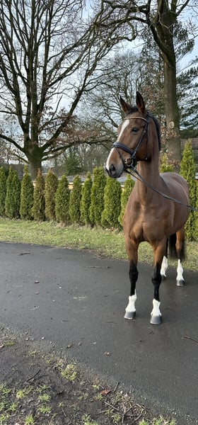 Unfortunately, due to circumstances changing unexpectedly, we are heartbroken to seek a new home for our mare Tilly as a riding companion. We are looking for a particularly loving and suitable environment for her. She is a Hanoverian, 17.3 hh tall, and 18 years old. Currently, she lives in a large herd in an open stable with 24/7 hay access and feels very comfortable there. She is also accustomed to coming in at night. Originally, she comes from the competitive sport and therefore has a spirited temperament. Despite her age, you wouldn’t notice her age at all — she is still very fit, alert, and full of energy. She is not a beginner’s horse, but she is very gentle, friendly, and human-oriented in daily handling. Tilly needs some time to settle into a new environment and to open her heart to a new person. She is looking for a home with experienced horse owners who have patience and are willing to accept her as she is, without performance expectations. Due to her age, she has osteoarthritis and should therefore only be moderately ridden as a leisure horse. She is especially suitable as a semi-reliable companion, both for an older horse or as a calm companion for a younger horse. It is very important to us that she finds a truly good and suitable home. Place before price. Please, no dealers. I look forward to sincere and friendly inquiries.